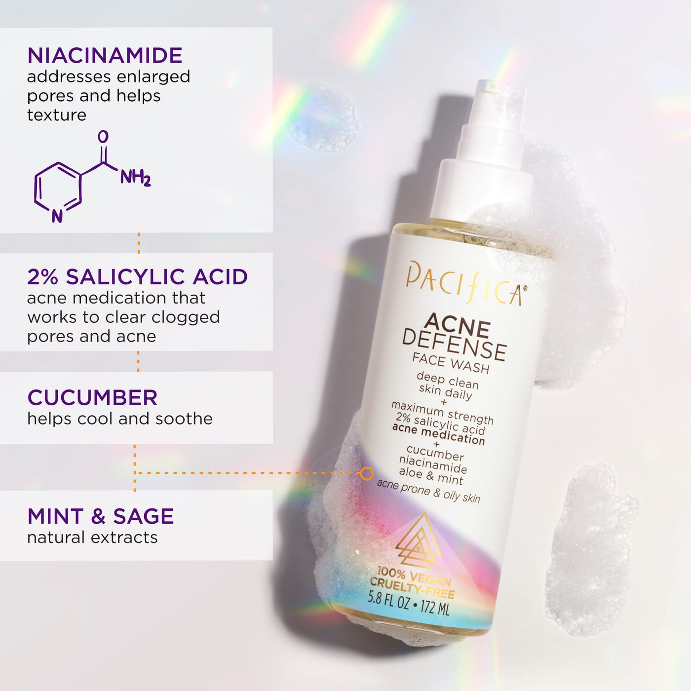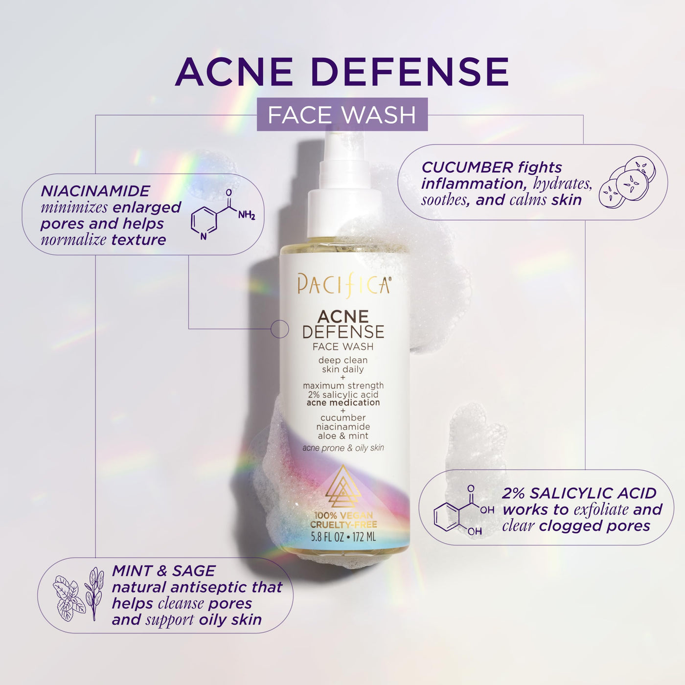 - Q: How often should I use the Pacifica Acne Defense Face Wash? A: For best results, use the Pacifica Acne Defense Face Wash twice daily, in the morning and evening, to keep your skin clean and help manage acne effectively.
