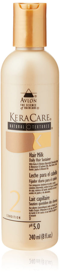 • Q: What is Avlon KeraCare Natural Textures Hair Milk used for? A: Avlon KeraCare Natural Textures Hair Milk is a hair styling agent designed to restore and nourish damaged hair, providing enhanced shine and suppleness.