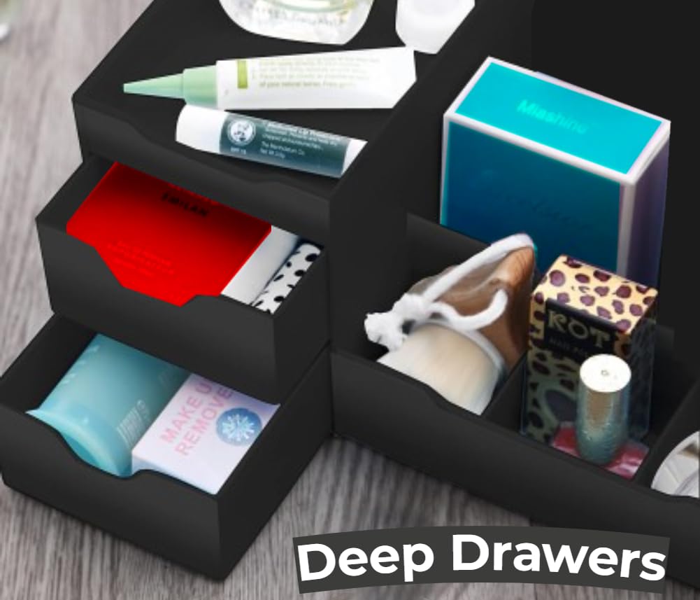 • Q: Can this organizer be used for purposes other than makeup storage? A: Absolutely! While it's great for makeup, the multifunctional design allows it to be used as a skincare organizer, bathroom sink organizer, or even for cologne storage, making it versatile for various needs.