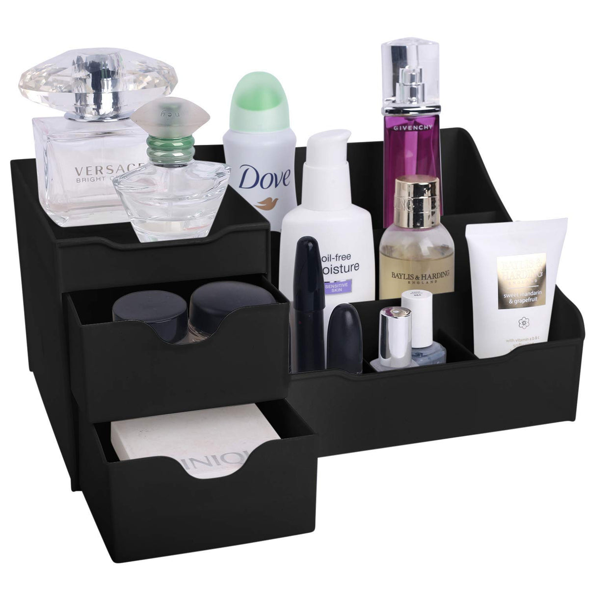 Mantello Bathroom Organizer Countertop- Make Up Organizers And Storage-, Makeup Organizer For Vanity- Black