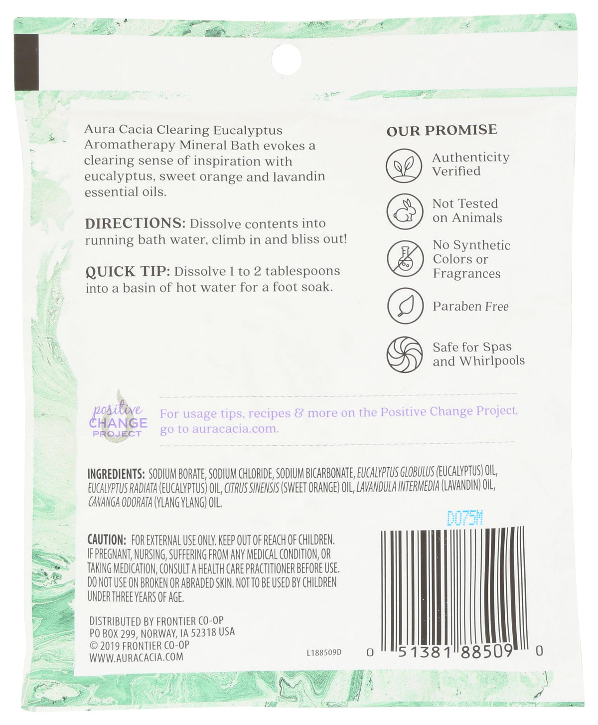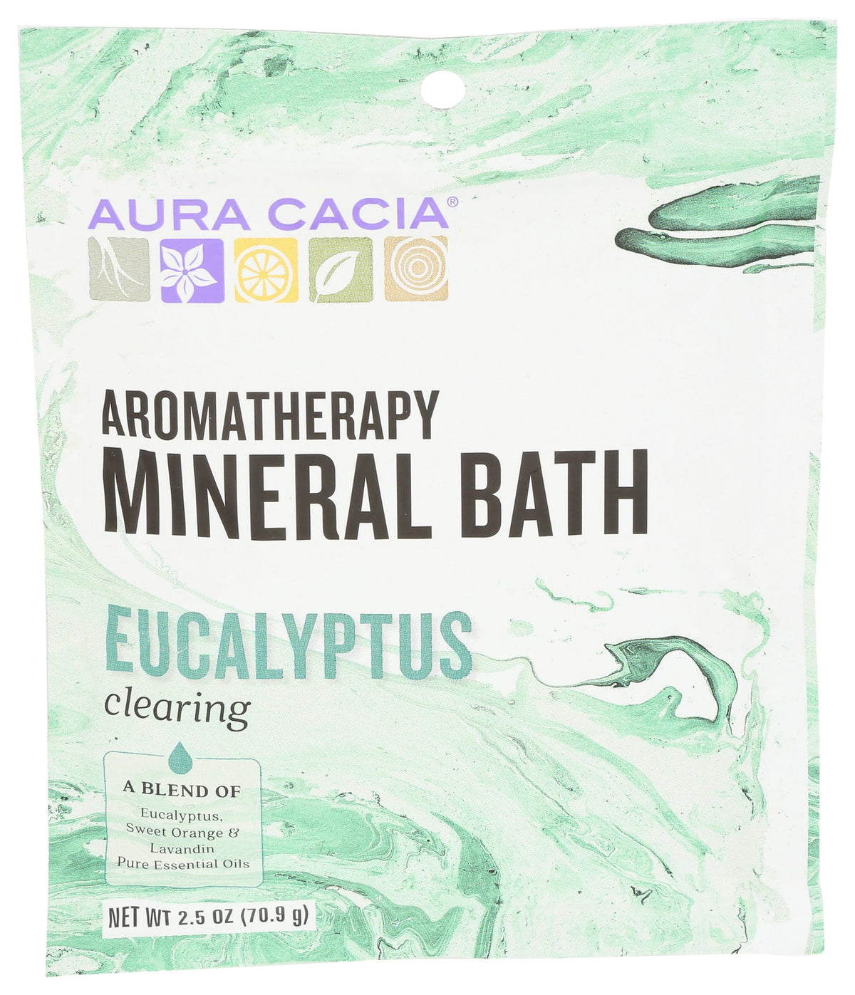 Aura Cacia Clearing Eucalyptus Aromatherapy Mineral Bath Is A Blend Of Minerals That Let You Emerge From The Soothing Waters Of Your Tub Feeling Refreshed And Velvety Smooth. Made From 100% Pure Essential Oils, This Mineral Bath Lets You Create An At-Home Spa Treatment That Fulfils The Senses, Protects The Body And Lifts The Spirit. This Mineral Bath Contains Three Main Scents: Eucalyptus For Exhilarating And Invigorating, Sweet Orange For Brightening And Uplifting And Lavandin For Purifying And Soothing. This Mineral Bath Is Not Tested On Animals, Is Safe For Spas And Whirlpools And Does Not Contain Synthetic Ingredients, Petroleum Or Parabens. Each Packet Of Aura Cacia Clearing Eucalyptus Aromatherapy Mineral Bath Contains 2.5 Ounce Of Product. See Label For Warnings.