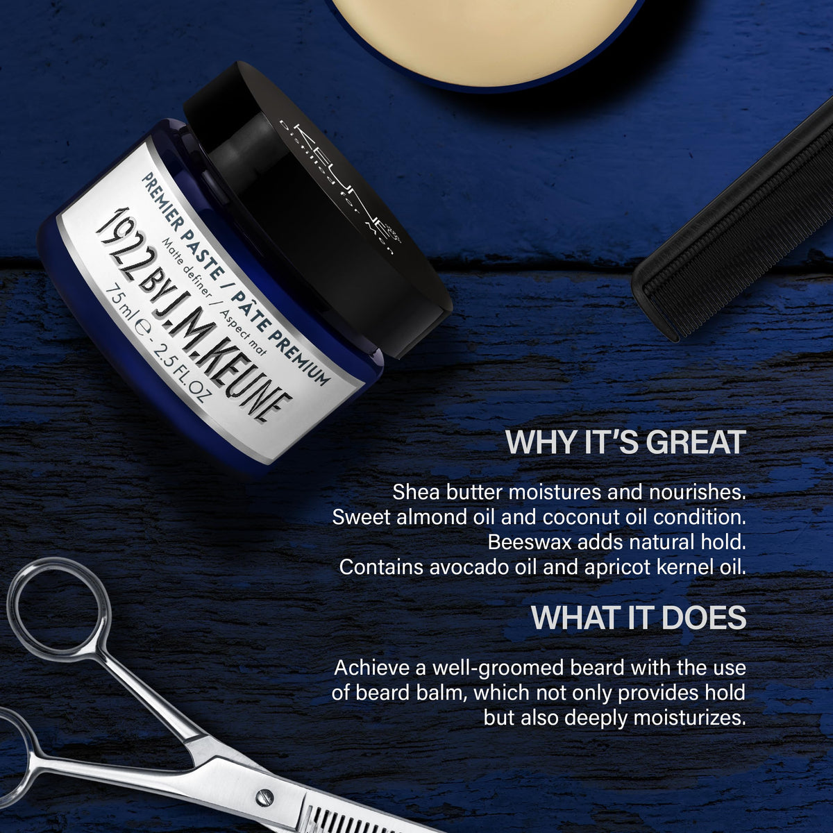 - Q: What makes 1922 by J.M. Keune Beard Balm different from other beard products? A: What sets 1922 by J.M. Keune Beard Balm apart from other beard products is its unique blend of natural ingredients like shea butter, sweet almond oil, and beeswax, which provide not only moisture and nourishment but also a light hold. This combination allows for a well-groomed look while maintaining a natural finish, making it an excellent choice for everyday use.