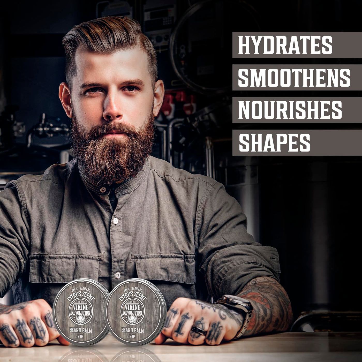 Viking Revolution Citrus Beard Balm - Beard Butter With Argan Oil, Beard Softener For Men With Jojoba Oil - Beard Moisturizer Fo