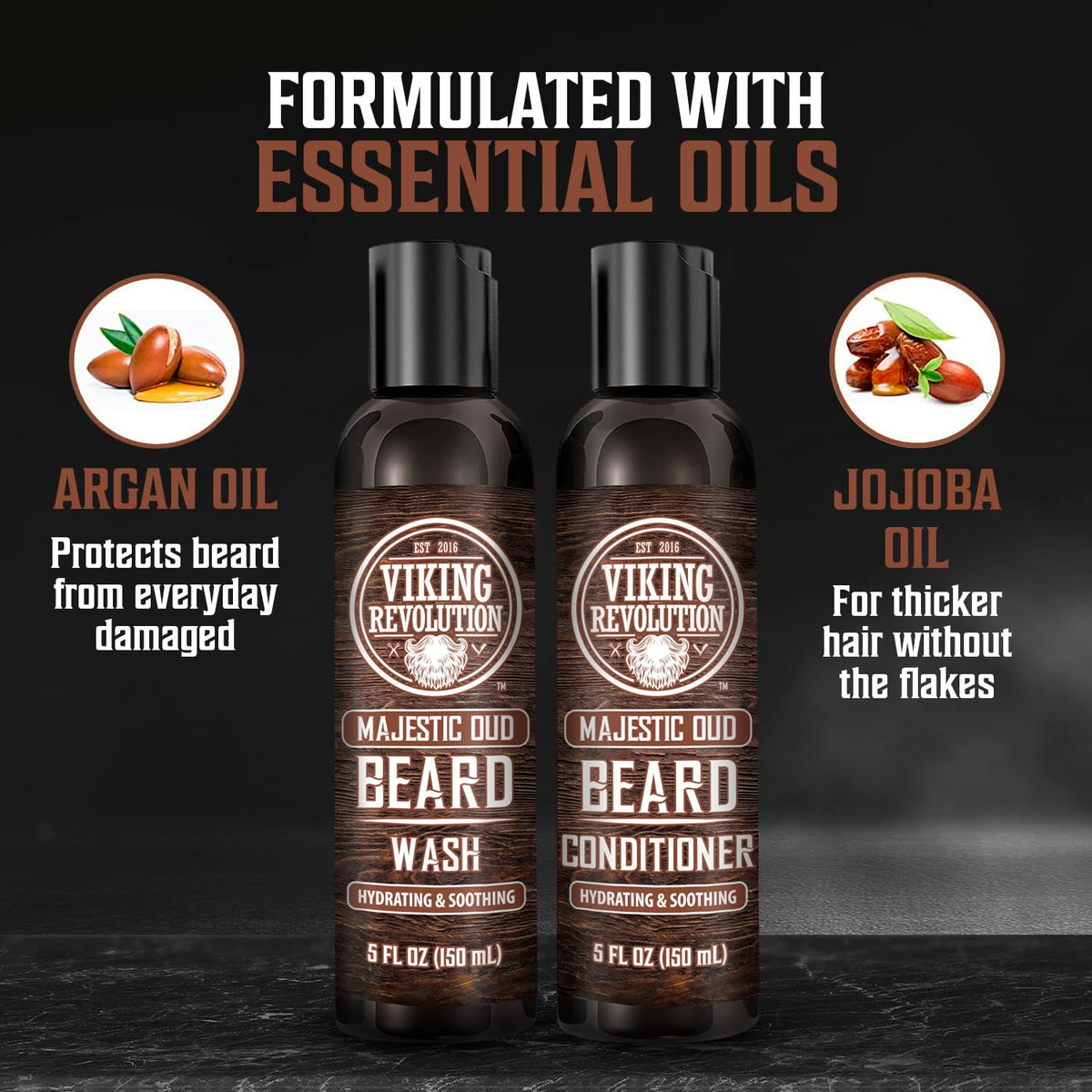Viking Revolution Beard Wash And Beard Conditioner For Men With Argan Oil And Jojoba Oil - Beard Softener And Strengthener Beard