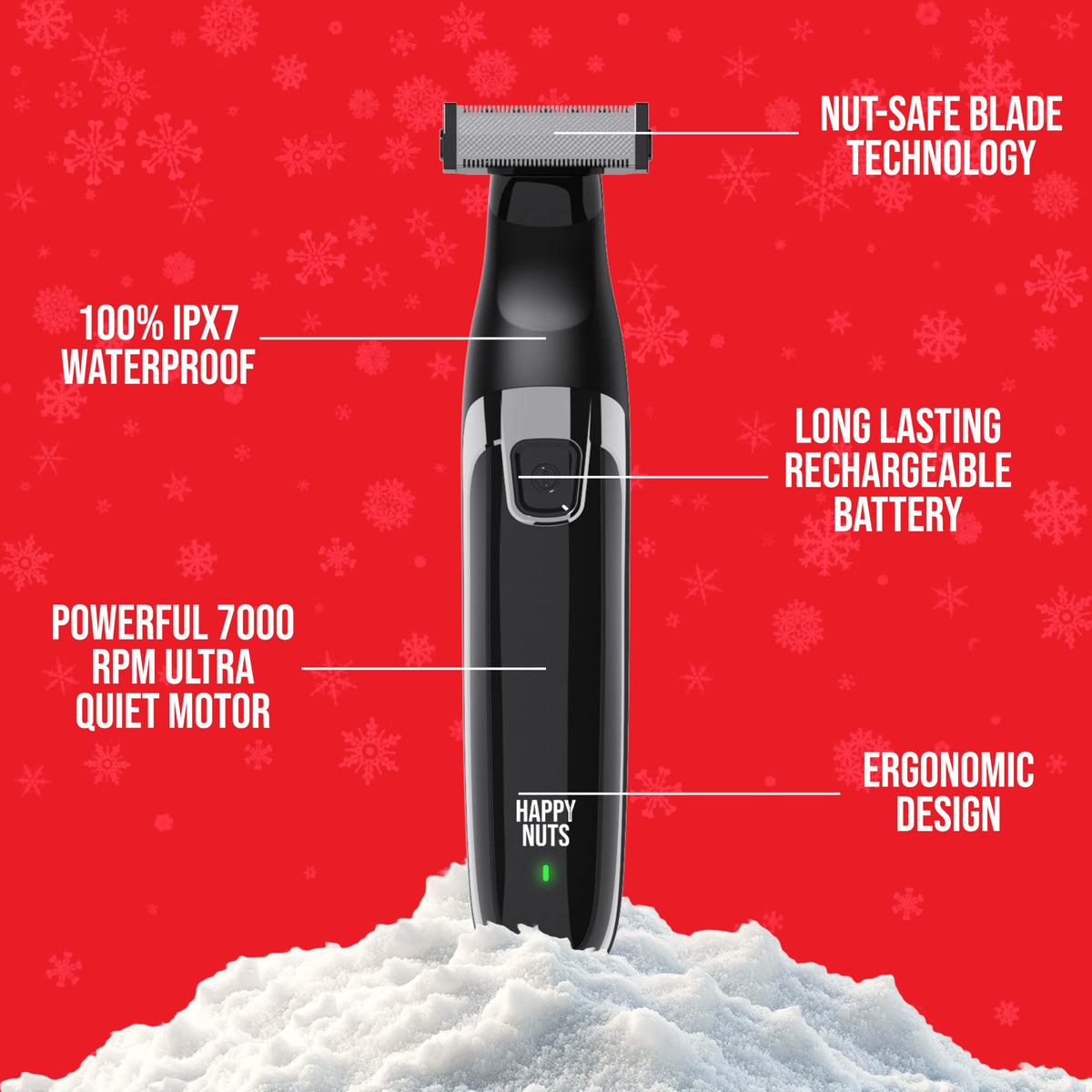 - Q: What makes the HAPPY NUTS The Ballber™ Electric Body Hair Trimmer different from other body groomers? A: The HAPPY NUTS The Ballber™ features a dual-sided ergonomic design and a nut-safe blade that ensures a safe and comfortable trimming experience, particularly in sensitive areas. Its 30-degree pivoting blade minimizes the risk of cuts and snags, making it ideal for manscaping.