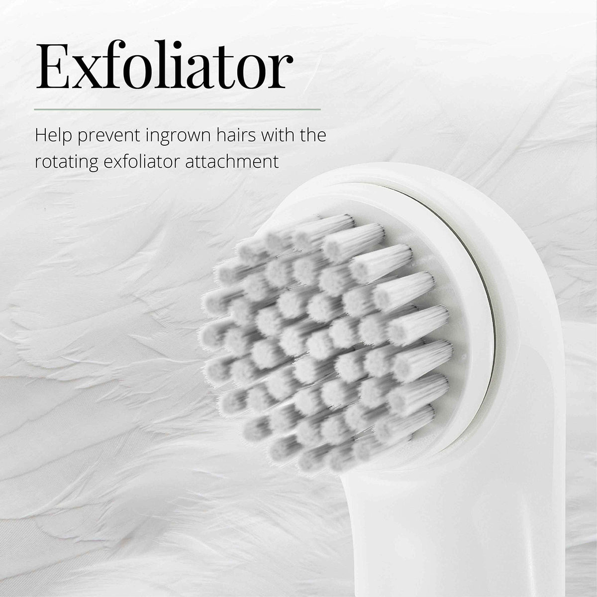 - Q: What attachments are included in the kit? A: The kit includes multiple attachments such as a bikini trimmer with an adjustable length guide, an angled foil shaver, a dual-sided gentle trimmer, a precision-edge detail trimmer, and a rotating exfoliator attachment.
