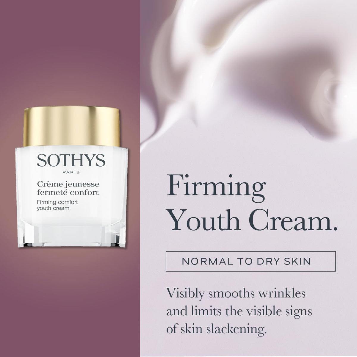 Offers An Immediate And Long Lasting Lifting Action And A More Youthful Radiance. All Youth Creams Contain Sothys Patented P3 Tri-Complex With Saffron Sophora Peptides Saffron And Sophora Have Been Scientifically Proven To Optimise Free Radical Scavenging And Activating Anti-Oxidant Defence Systems While A Combination Of Two Matrikines Messenger Peptides Activate The Genes Responsible For Stimulation Of Skin Regeneration Responses. Directions: Apply Morning And Evening Over The Recommended Youth Serum. Key Ingredient: Hibiscus Seed Extract Protects Fgf Fibroblast Growth Factor In Order To Reactivate Dermal Synthesis Of Essential Structural Proteins And Elastin Quality. Plantain Stem Cells Are Included To Activate Genes Via Microrna Pathways To Boost Skin Elasticity And Reduce The Appearance Of Hyperpigmentation Resulting From Skin Stress Uv, Chemicals, Aggressive Treatments.