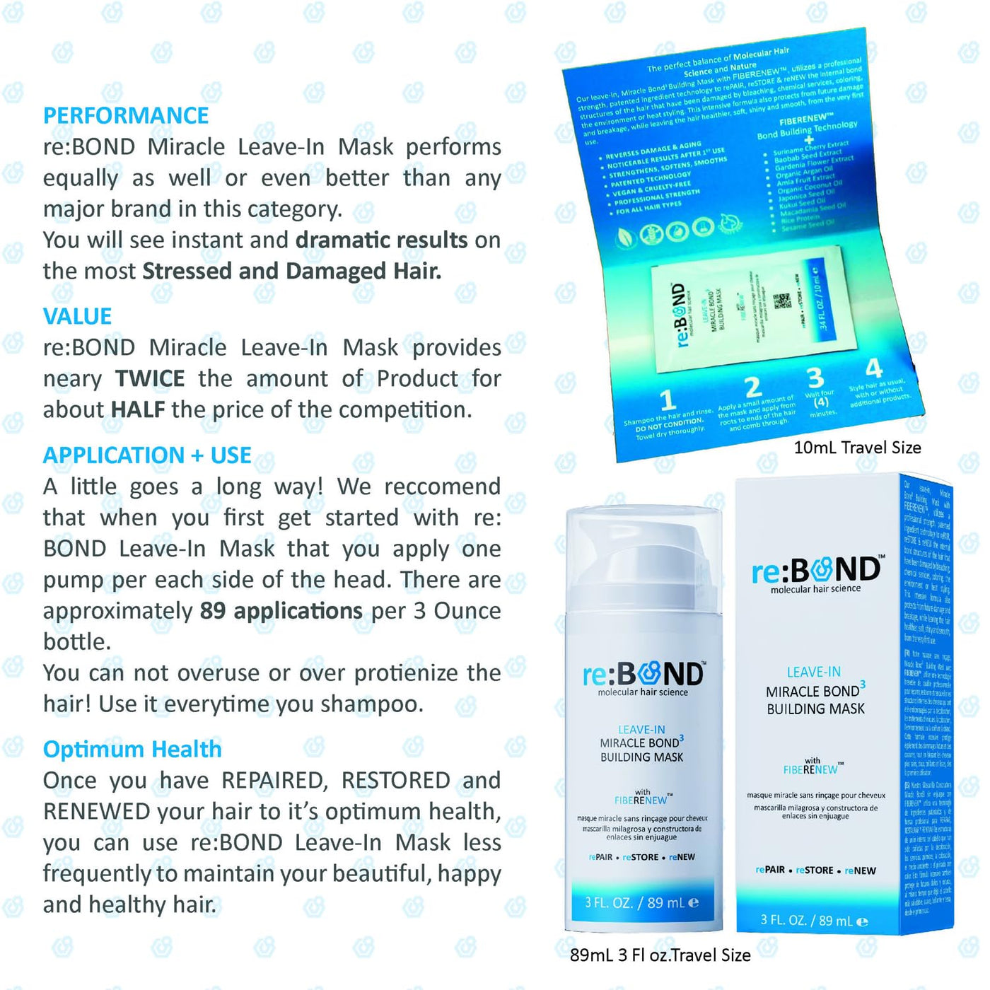 Rebond Leave-In Miracle Bond Building Hair Mask- 4 Minute Repair Treatment Deep Conditioning For Bleached, Damaged, Dry, Colored