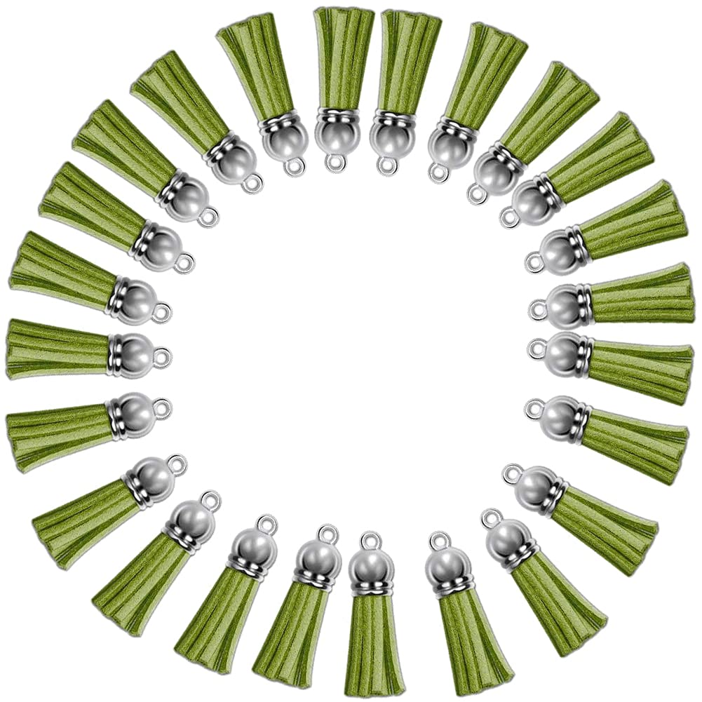 Keychain Tassels Leather Tassel Pendants with Silver White caps,Tassel charm for Jewelry Making Keychain Bracelets Ring crafts -