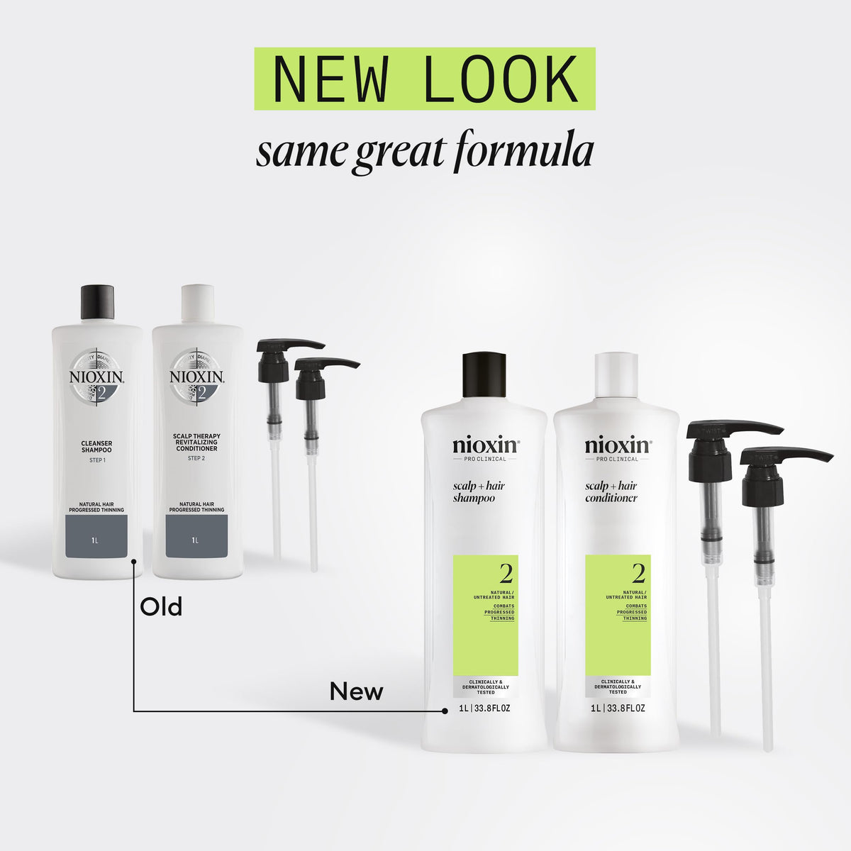 Nioxin System 2 Shampoo & Conditioner Prepack, Natural Treated Hair With Progressed Thinning, Pumps Included, 33.8 Fl Oz (Packag