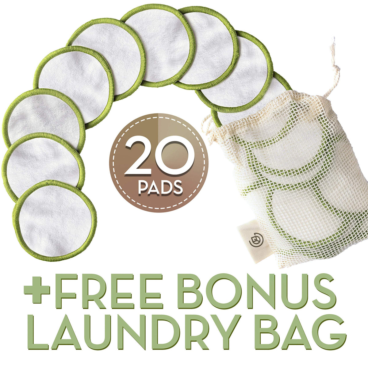 Greenzla Reusable Makeup Remover Pads (20 Pack) With A Washable Laundry Bag And Round Box For Storage, Reusable Bamboo Cotton Ro