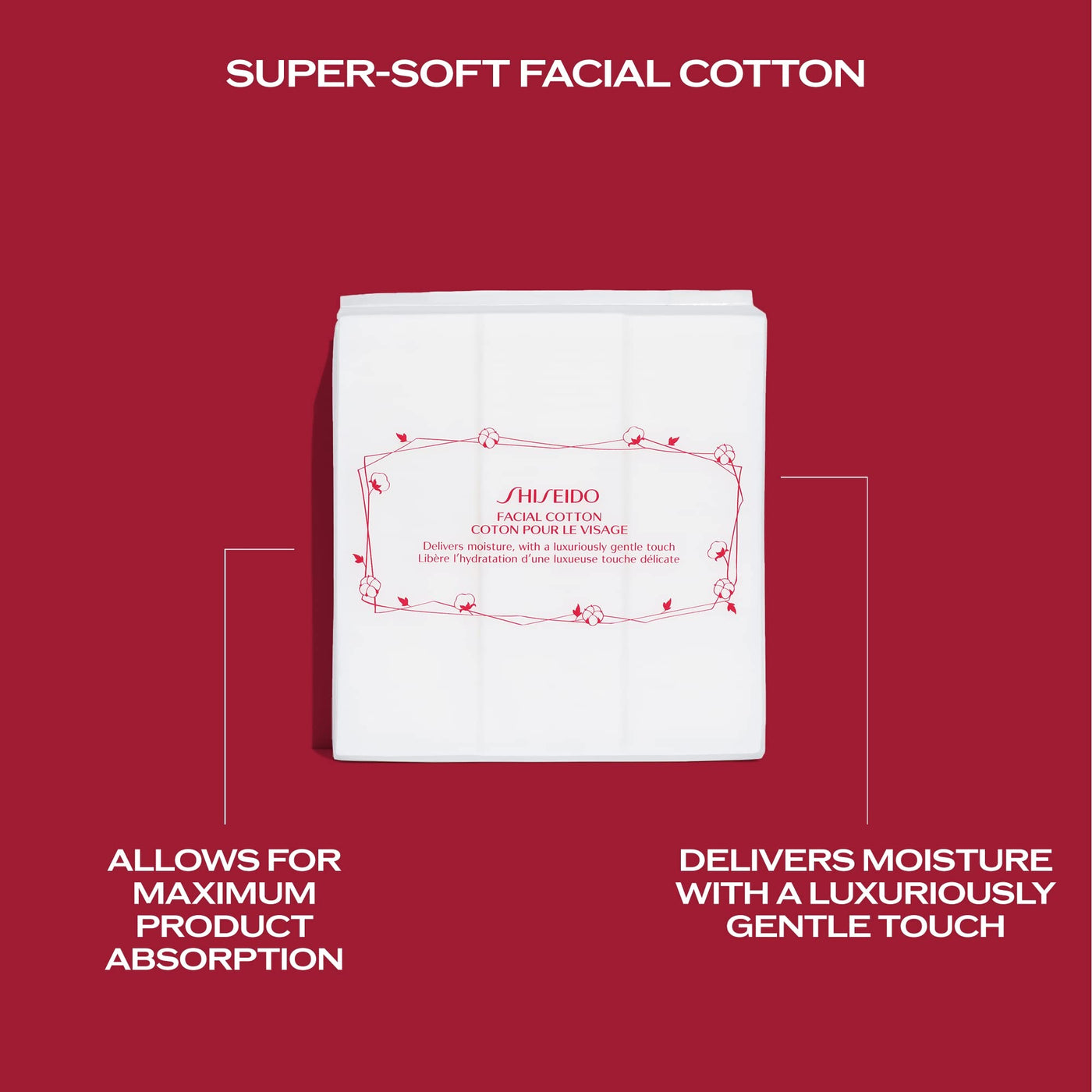 - Q: What are Shiseido Facial Cotton Pads made of? A: Shiseido Facial Cotton Pads are made from 100% natural, super-soft cotton, providing a gentle touch for skincare routines and makeup removal.