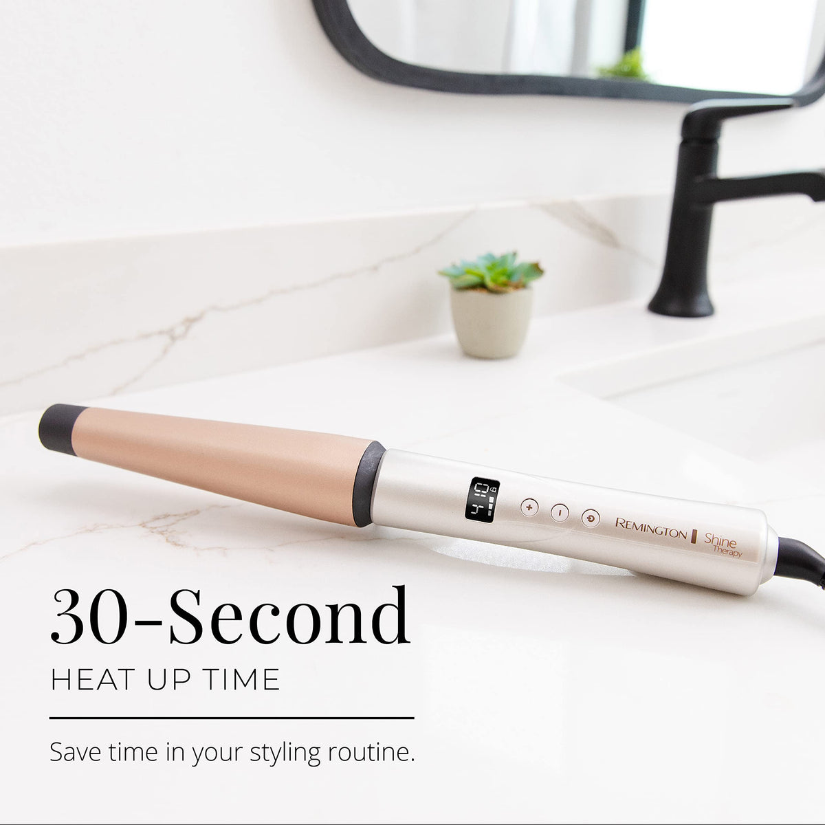 Remington Shine Therapy Curling Wand, Infused With Argan Oil & Keratin, 1-1 Inch Tapered Curling Iron For Tousled Waves, Includ