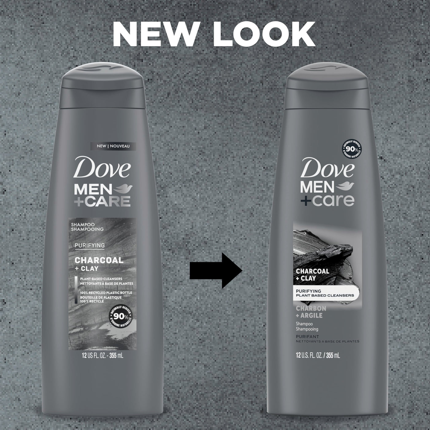 DOVE MEN + CARE Shampoo Charcoal + Clay for Healthy-Looking Hair Naturally Derived Plant Based Cleansers 12 oz