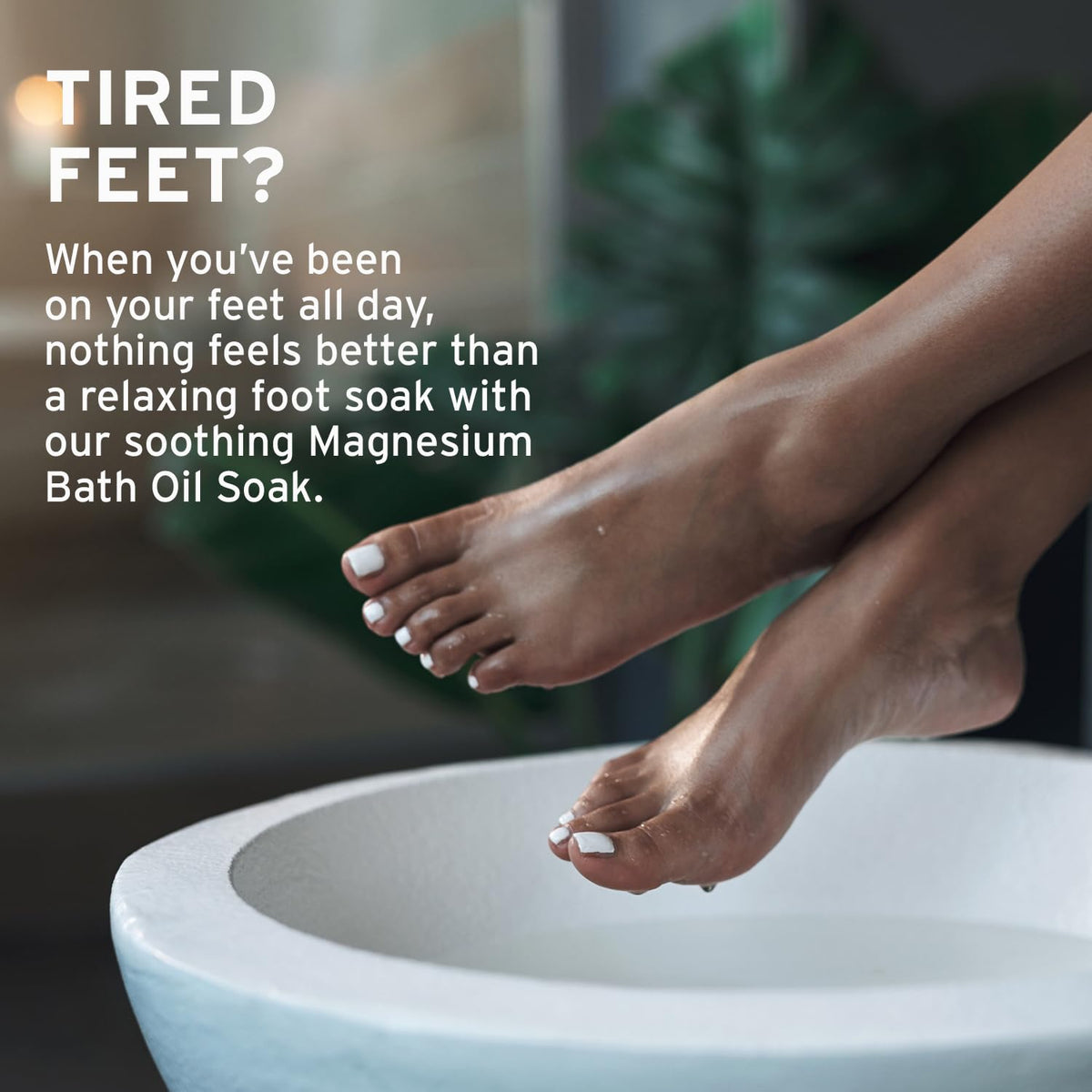 - Q: What are the benefits of using Life-flo Magnesium Oil Bath Soak? A: Life-flo Magnesium Oil Bath Soak is designed to relax muscles and joints, making it ideal after workouts or long days on your feet. The calming lavender scent enhances relaxation, and the magnesium chloride from the Zechstein Seabed helps in soothing tired muscles.