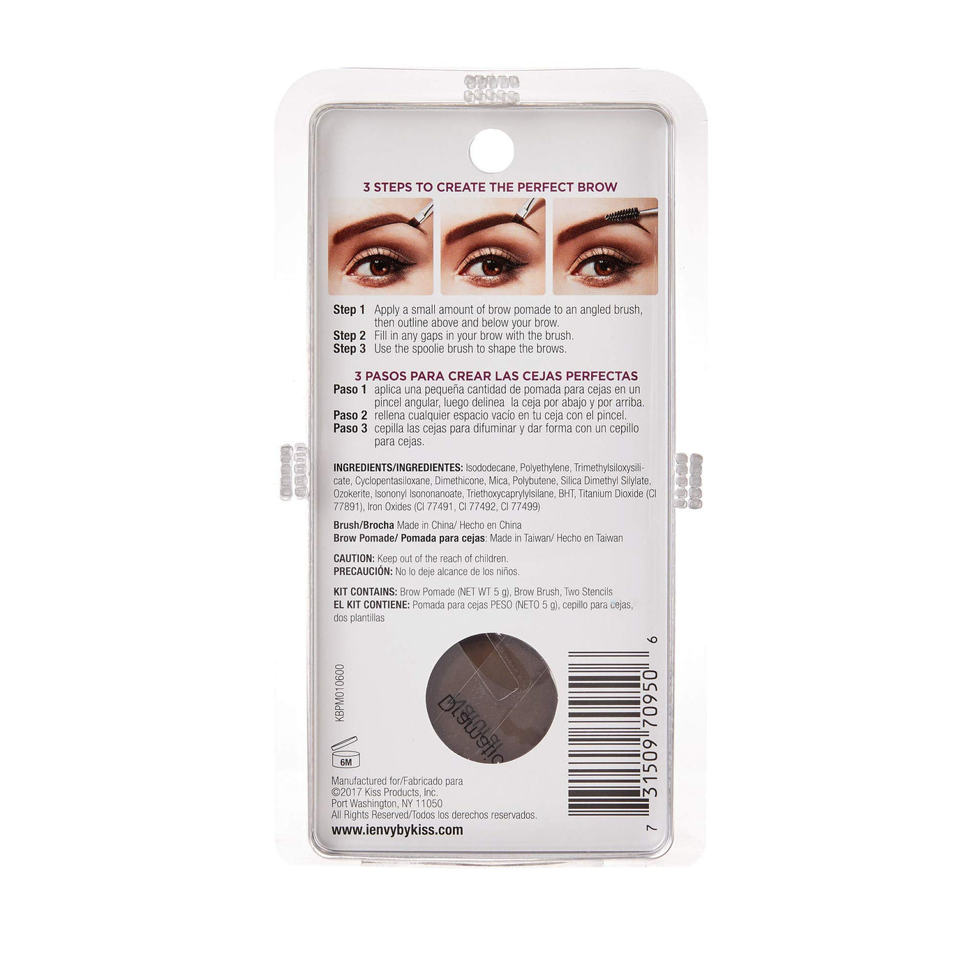 Ienvy By Kiss All-In-One Brow Pomade Dark Brown Kbpm01 Waterproof Long Lasting Mirror Cap Stencils Included