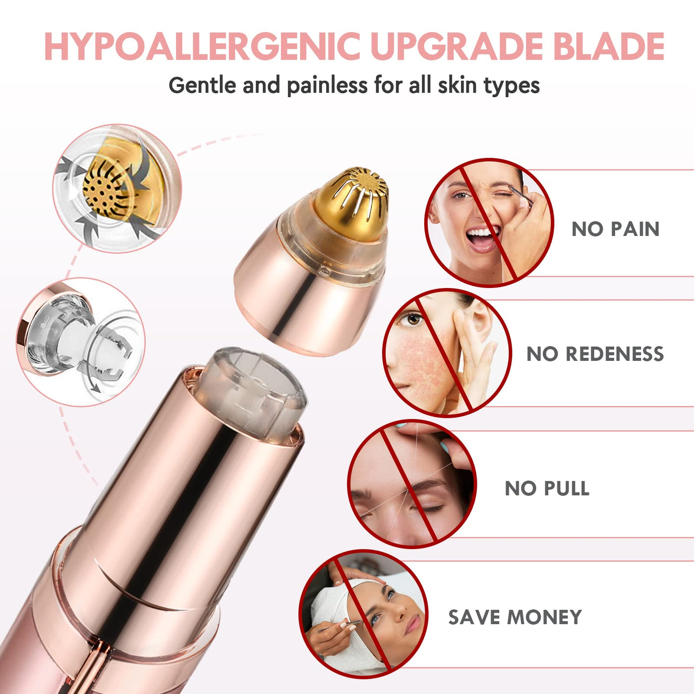 - Q: Is the eyebrow trimmer safe for sensitive skin? A: Yes, the eyebrow trimmer is designed with a plated head made of anti-allergic material, making it safe for all skin types, including sensitive skin. It is dermatologist recommended and can be used daily without irritation.