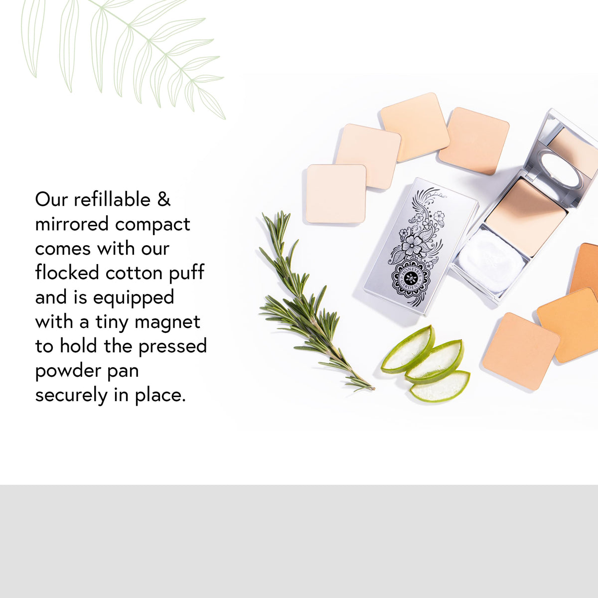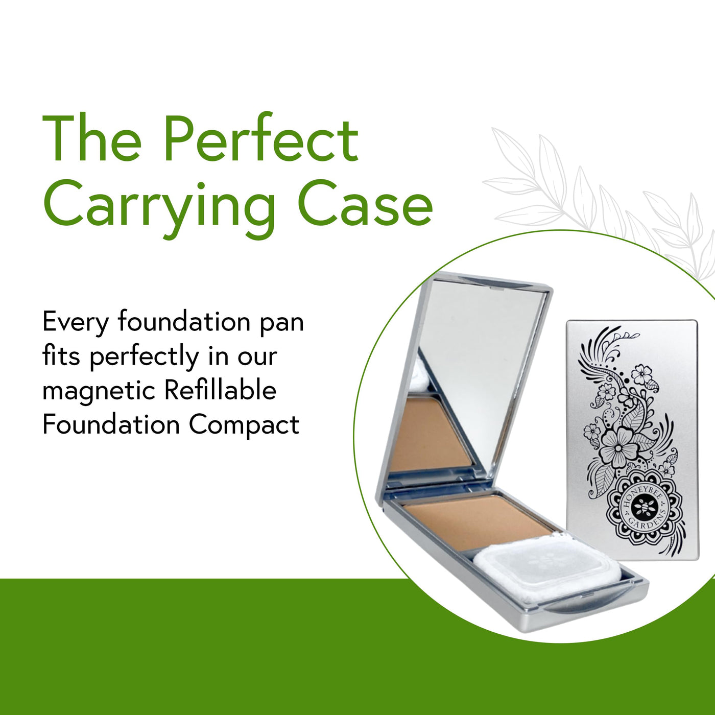 Honeybee Gardens Refillable Pressed Mineral Powder Foundation Compact With Puff & Mirror (Sold Empty) - Eco-Friendly, Travel-Fri