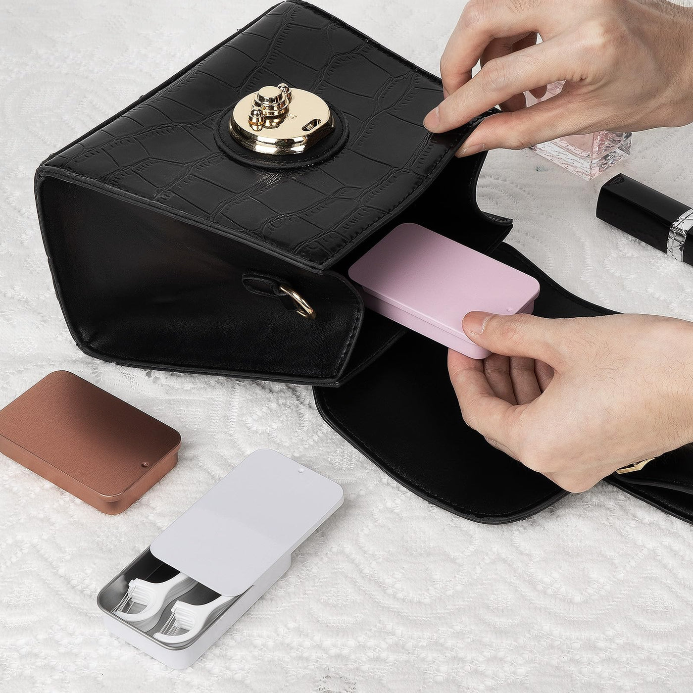 Adorila 6 Pack Glide Dental Floss Case, Portable Metal Dental Pick Dispenser, Refillable Travel Floss Pick Organizer Case for fo