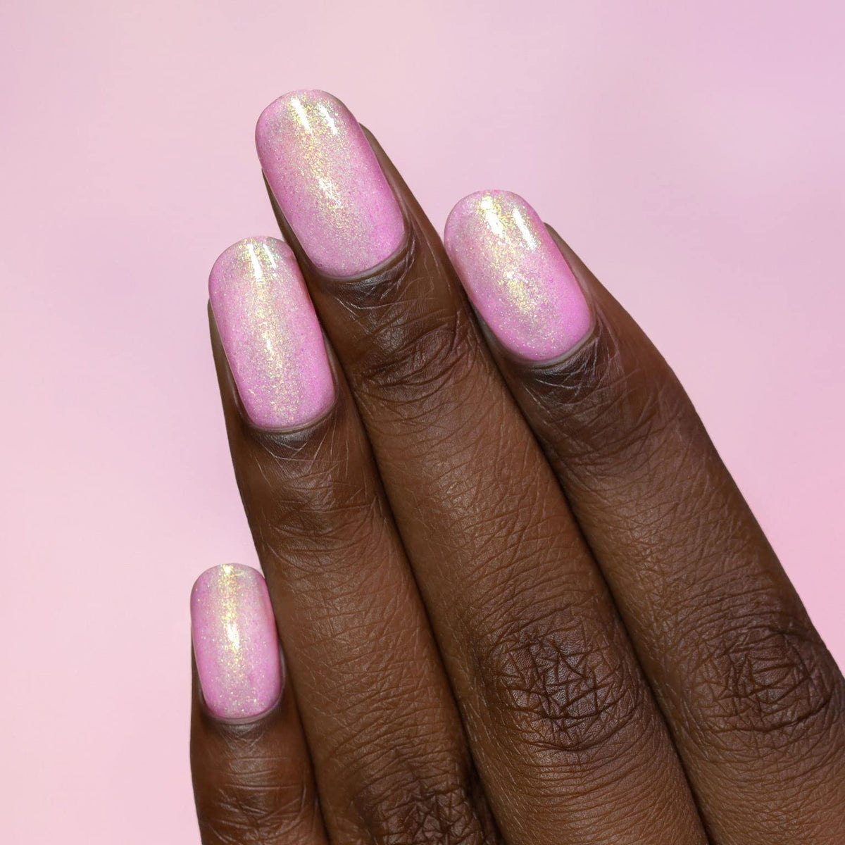Fairy Floss Is A Creamy Pastel Pink With A Gold-To-Green Iridescent Shimmer And Subtle Holographic Twinkle. Fairy Floss Is Sure To Take You On An Adventure In The Clouds! Watch As An Ethereal Pink Base Pairs Beautifully With A Vivid Green-To-Gold Shimmer To Create A Stunning Combination That You Wont Want To Miss In The Sunlight! Fairy Floss Is Part Of The Cloud Nine Collection, A Medley Of 6 Shades Inspired By A Cloud-Filled Pastel Sky Fit For A Fantasy. Made Up Of Contrasting Shimmers, Most With A Hint Of Holographic Glimmer, Each Carefully Chosen Color-Shifting Sparkle Adds The Perfect Finishing Touch To These Serene Shades! Max. Coverage In 2-3 Coats