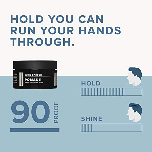 - Q: What is the hold strength of Blind Barber 90 Proof Hair Pomade? A: The Blind Barber 90 Proof Hair Pomade offers a strong hold, ensuring your hairstyle stays in place throughout the day while allowing you to run your hands through your hair without feeling stiff.
