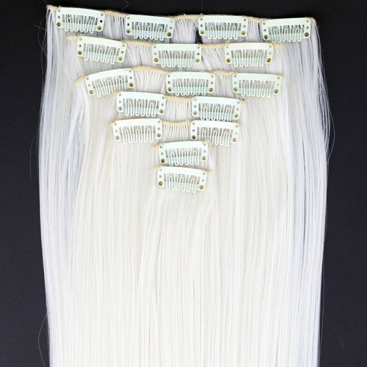 - Q: How many pieces are included in the set? A: The set includes seven pieces, with a total of sixteen clips for a full head installation.