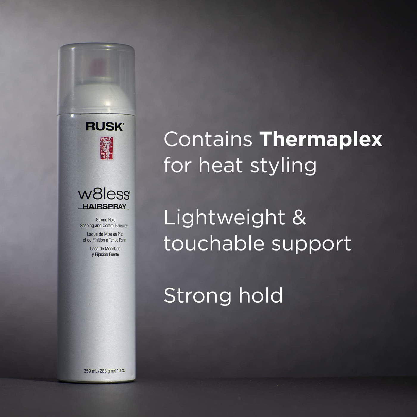 Rusk Designer Collection W8Less Strong Hold Shaping And Control Hairspray, 10 Oz, Provides Natural, Long-Lasting, Touchable Supp