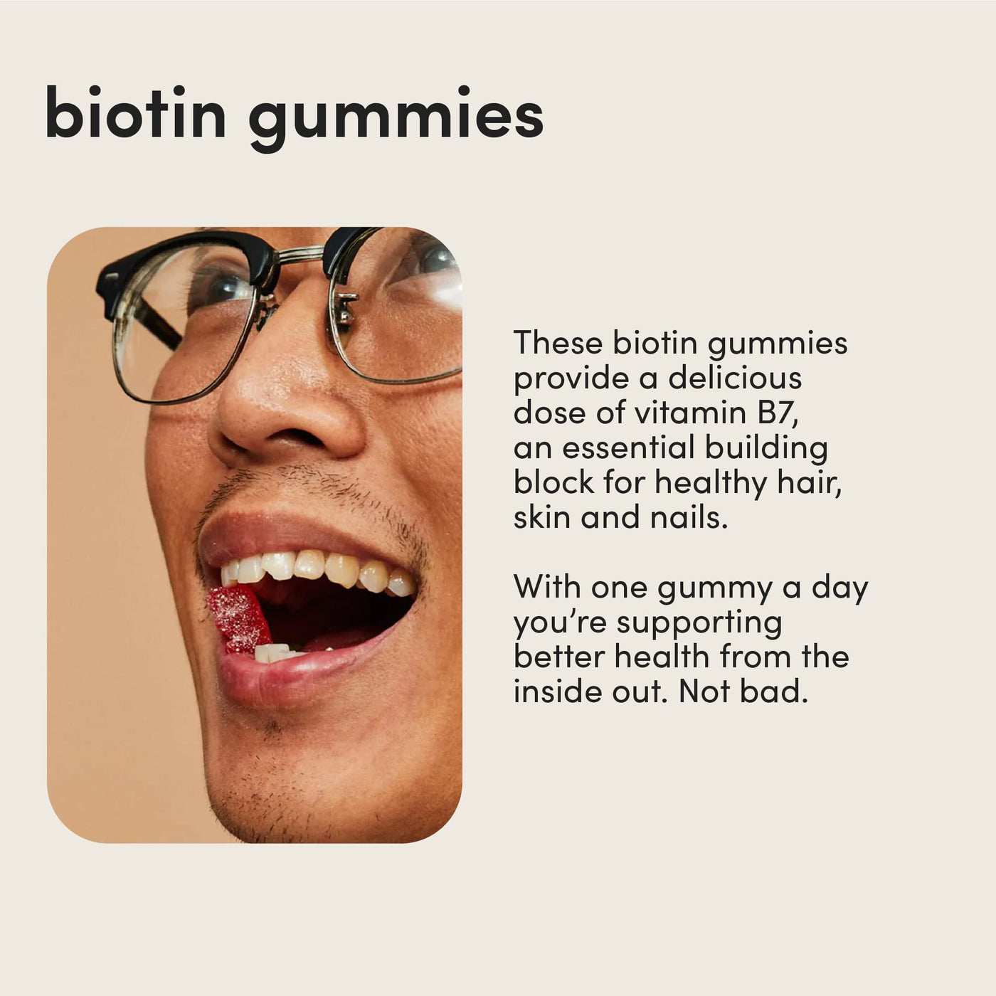 - Q: What benefits do the biotin gummies provide? A: The biotin gummies are formulated to strengthen hair, skin, and nails, providing essential nutrients like folic acid that promote healthier and thicker hair growth.
