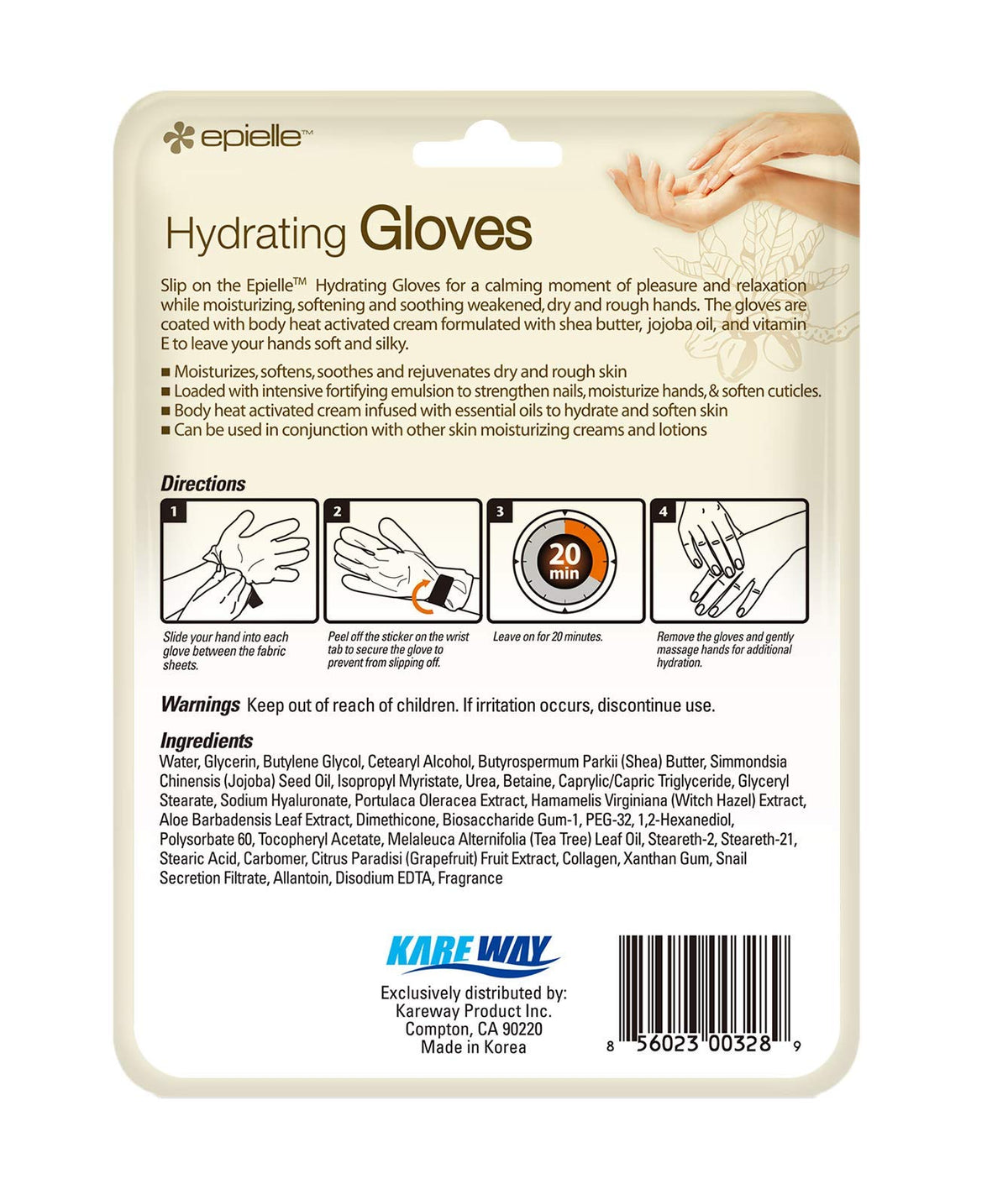 - Q: What is the best way to store the hydrating gloves? A: To maintain the effectiveness of the Epielle Hydrating Hand Masks, store them in a cool, dry place away from direct sunlight and heat.