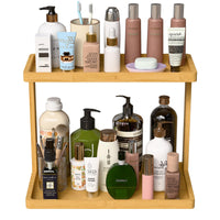 Peker Bamboo Bathroom Organizer Countertop - Small Vanity Storage Shelf For Makeup, Perfume, Skincare - Natural Cosmetics Displa