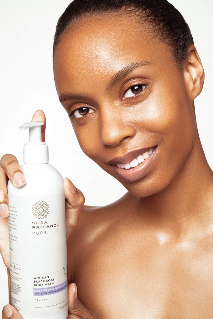 - Q: How do I use the Shea Radiance African Black Soap Body Wash? A: To use, apply a dime-size amount to wet hands, a washcloth, or a loofah. Create a gentle lather and use it on your face, body, or hair, then rinse thoroughly.