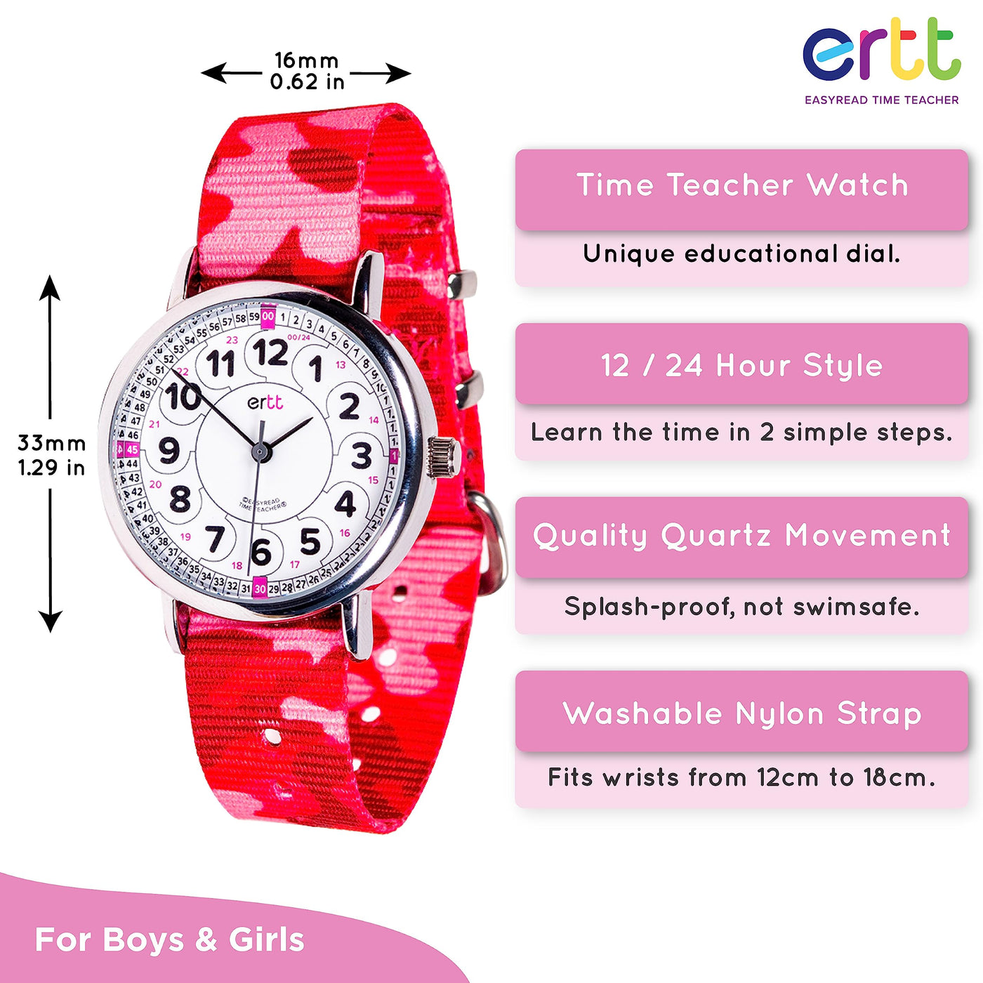 EasyRead Time Teacher Analog Watch for Kids, Fun and Easy to Learn, with 33mm Alloy Case and Nylon Strap, Includes Battery