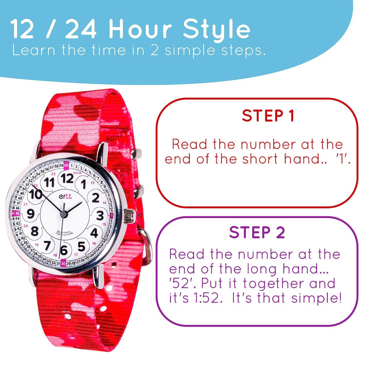 UNLOCK THE JOY OF LEARNING: EasyRead's Time Teacher kids analog watch is designed to help kids learn how to tell the time in the most effective way possible. With the Time Teaching System, which is quick and easy to pick up! Our analogue watch for children has two simple steps to learn, and its designed to keep them engaged and interested in learning how to read the time.