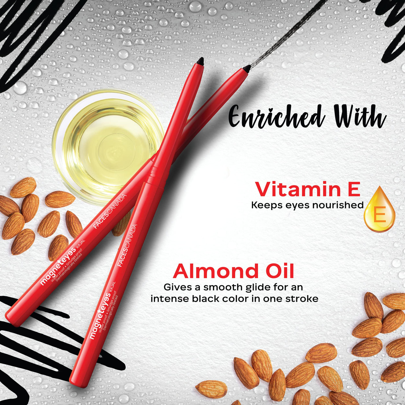 - Q: Is the FACESCANADA Magneteyes Kajal suitable for sensitive eyes? A: Yes, the FACESCANADA Magneteyes Kajal is enriched with Almond Oil and Vitamin E, making it gentle and nourishing for the eyes, suitable for sensitive skin.