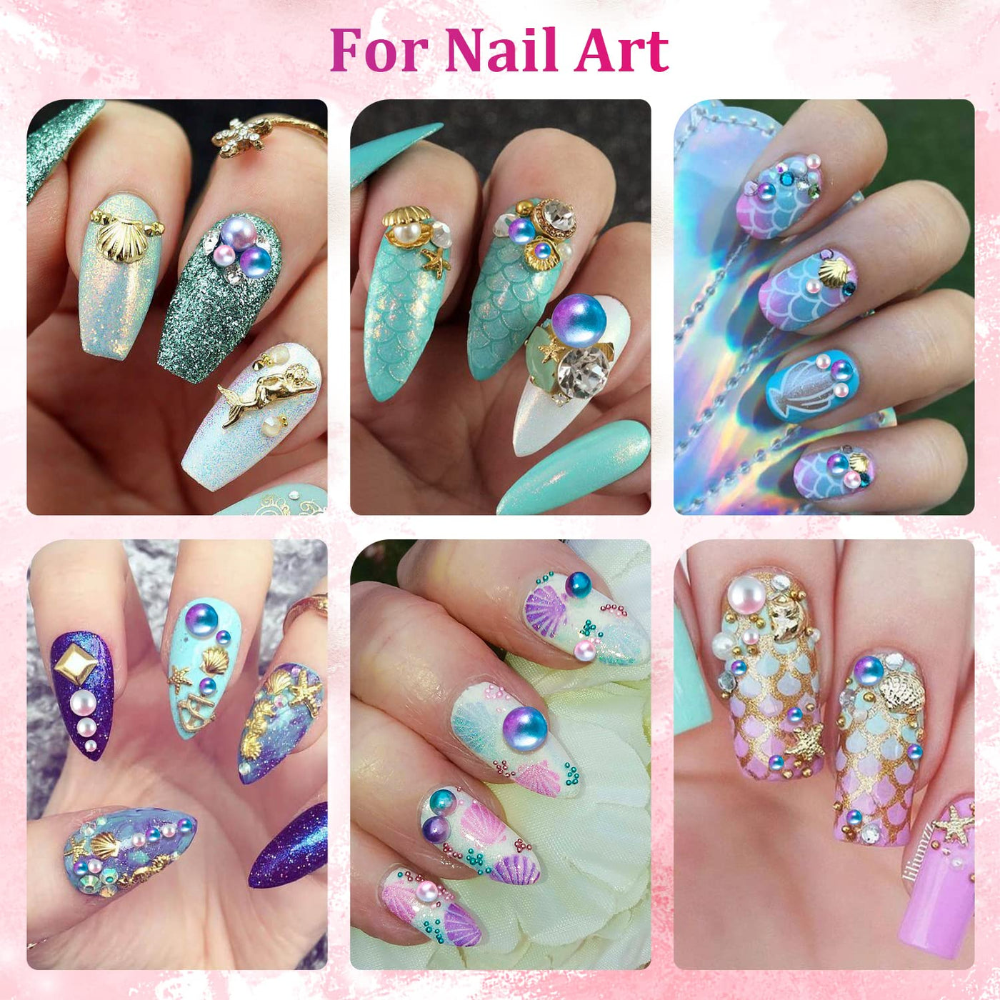 Belleboost Flat Back Pearls Kits 2 Boxes Of Flatback Blue Mermaid Half Round Pearls With Pickup Pencil And Tweezer For Home Diy