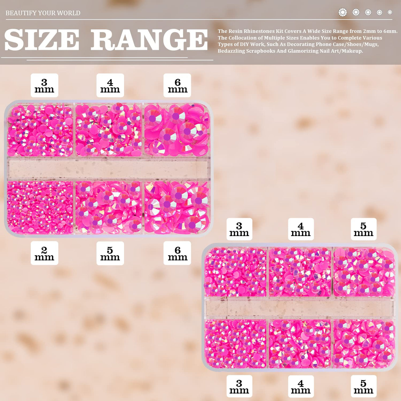 ?Package Content--This Resin Rhinestone Kit Includes 2 Boxes, Each With 6 Grids, Featuring A Variety Of Sizes: Box #1 Contains 2Mm X 1 Grid, 3Mm X 1 Grid, 4Mm X 1 Grid, 5Mm X 1 Grid, And 6Mm X 2 Grids; Box #2 Contains 3Mm X 2 Grids, 4Mm X 2 Grids, And 5Mm X 2 Grids. A Tweezer And 1 Pickup Pencil Are Included For Easy Picking Up Of Rhinestones. This Set Offers More Large-Size Gems, Making It Perfect For Diy Craft Decorations, Eye Makeup, Face Makeup And Nail Art .?Vibrant Gems For Craft--Made Of Resin Instead Of Glass, These Rhinestones Are Lightweight, Durable, And Economical. Designed With Perfect Facets, These High-Quality Jelly Gems Have A Delicate And Exquisite Shine, Enhancing The Appeal Of Your Crafts Or Nails With Their Vibrant Colors. The Ab Coating Is Firmly Combined On The Outer Surface Of Each Rhinestone, Which Can Have Different Color Performances Under Different Light Or Different Refraction Angles, Providing Long-Lasting Sparkle.?Independent Lid For Each Grid--The 6-Grid Box Features 6 Individual Lids, Ensuring That Each Compartment Is Completely Separate From The Others. This Design Allows For Easy Organization Of Various Sizes Of Resin Rhinestones Without The Worry Of Mixing Or Spilling.?Tips For Use--Non-Hot Fix Jelly Flatback Gemstones Require Adhesive For Nail Art, Crafts, Or Artwork Design. We Recommend Using B7000 Rhinestone Jewelry Glue For Diy Projects And Uv / Quick Dry Nail Glue For Nail Art. To Apply The Resin Rhinestones, First, Clean The Surface Of Your Nails Or The Crafts You Wish To Embellish. Then, Apply The Rhinestones With The Appropriate Glue And Wait For Them To Dry. (Please Note That Glue Is Not Included.)?Wide Application--These Sparkling Iridescent Resin Rhinestones Are Perfect For Creating Dazzling Looks. Use Them For Face Makeup, Eye Makeup, Body Art, 3D Nail Art Or Bedazzling Diy Crafts Like Shoes, Tumblers, Mugs, Bottles, Phone Cases, Popsockets, Scrapbooks And More.