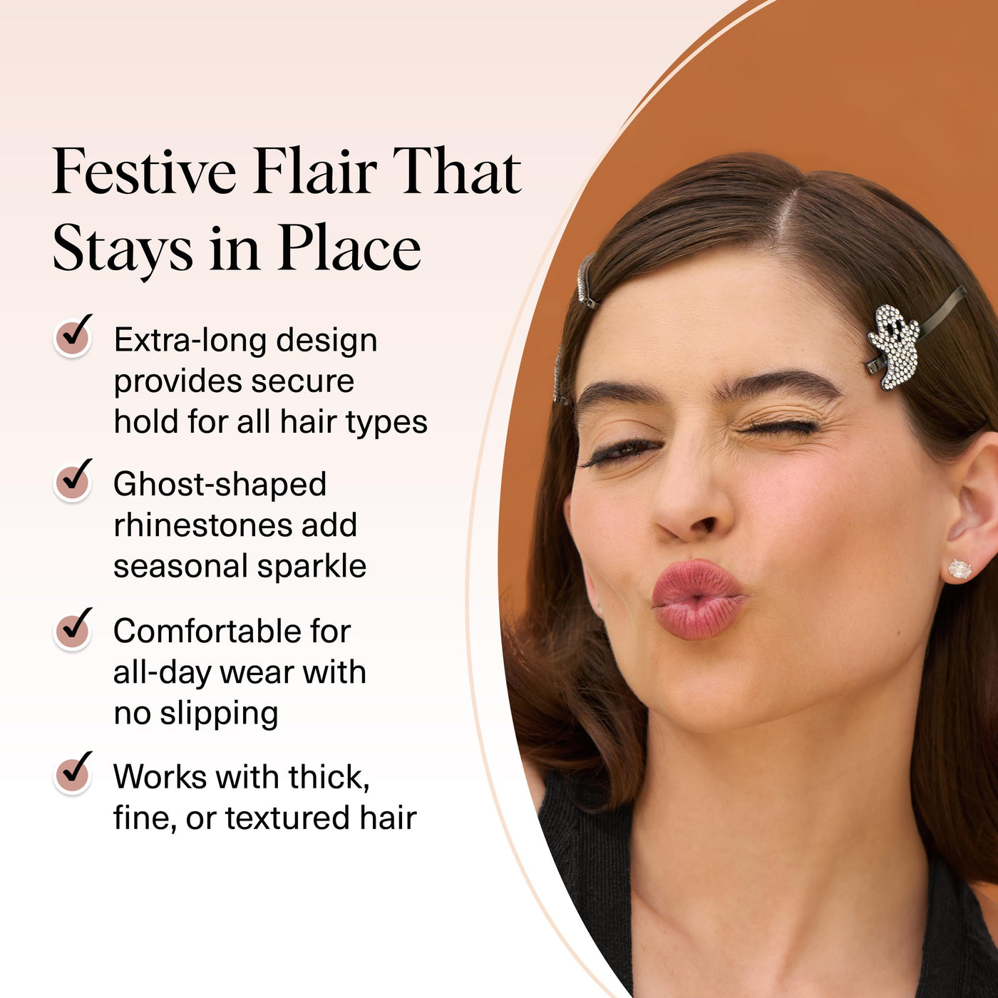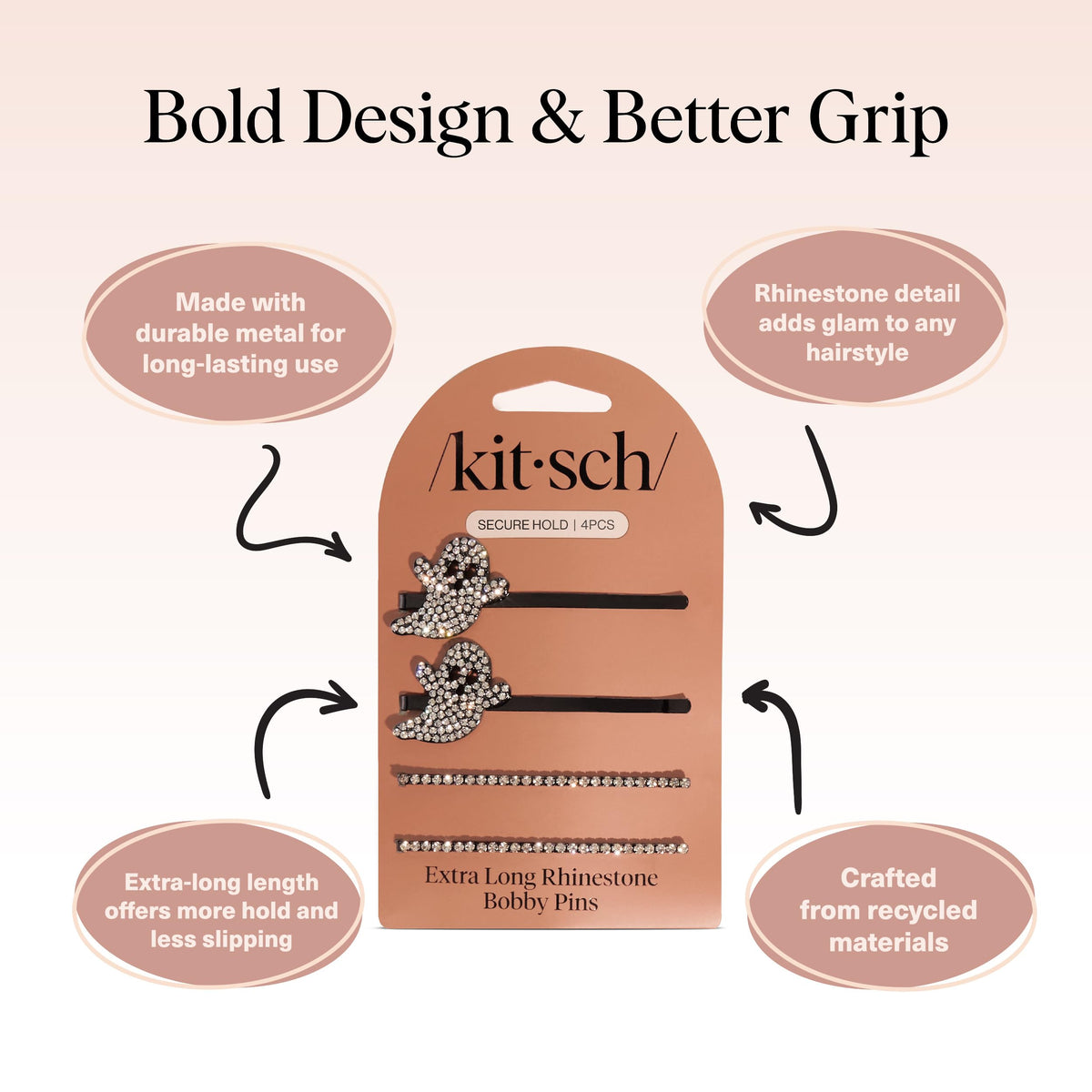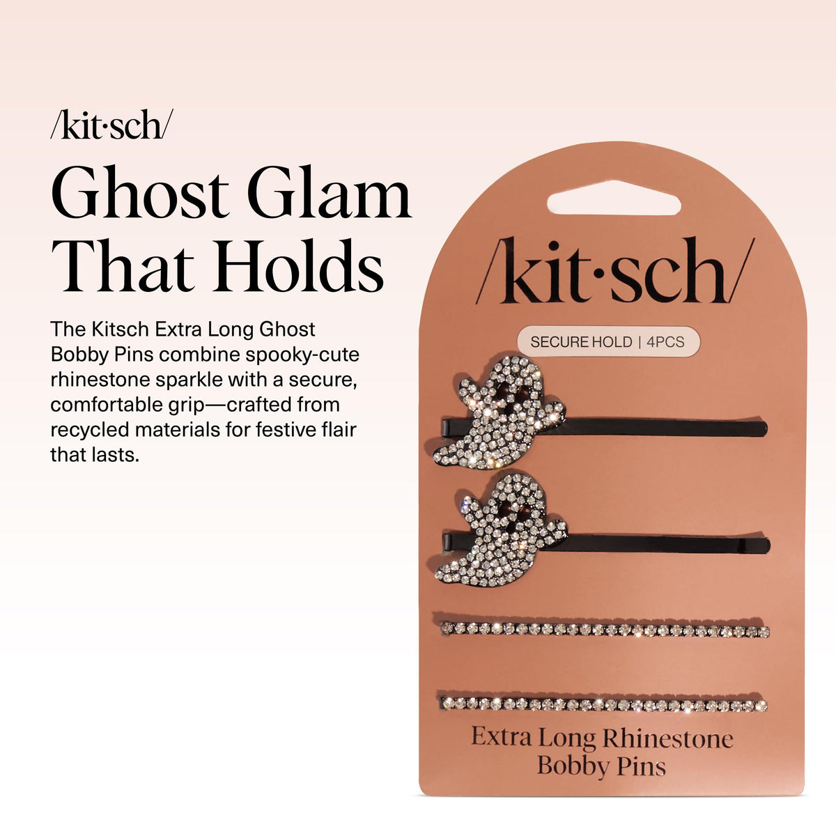 Kitsch Extra Long Metal Rhinestone Bobby Pins - Ghost Design Sparkly Hair Pins - Halloween Hair Accessories - Secure Hold Bobby