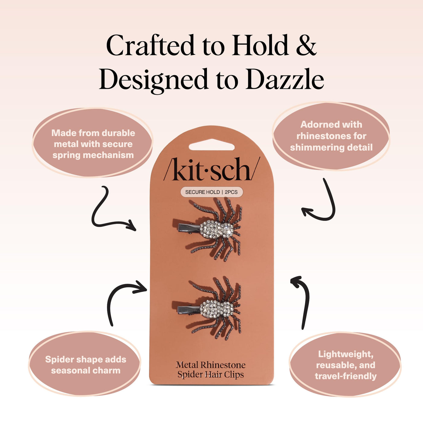Kitsch Spider Hair Clips for Women - Rhinestone Hair Accessories with Strong Grip | Sparkly Barrettes for Styling & Everyday Hai