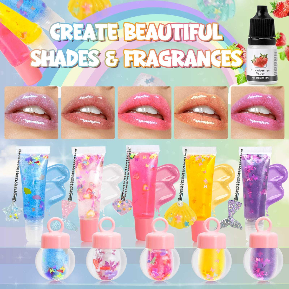 Lip Gloss Making Kit Jcoos 73Pcs Lip Gloss Keychain Make Your Own Lip Gloss Kit, Diy Lip Gloss Making Kit Moisturizing Shine Beg