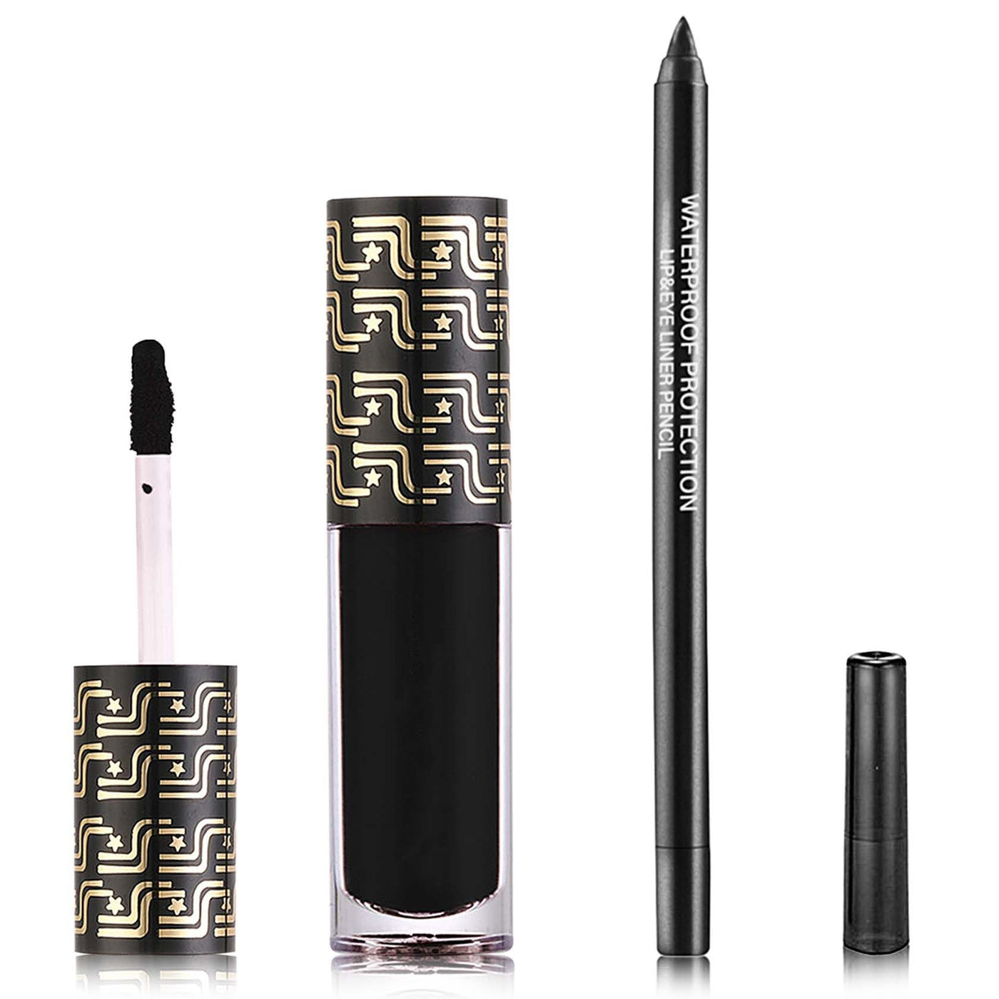 Black Matte Lipstick,2 Pcs Black Matte Lip Liner And Liquid Lipstick Set,Waterproof Long Lasting Lip Gloss Stain,Matte Liquid Li