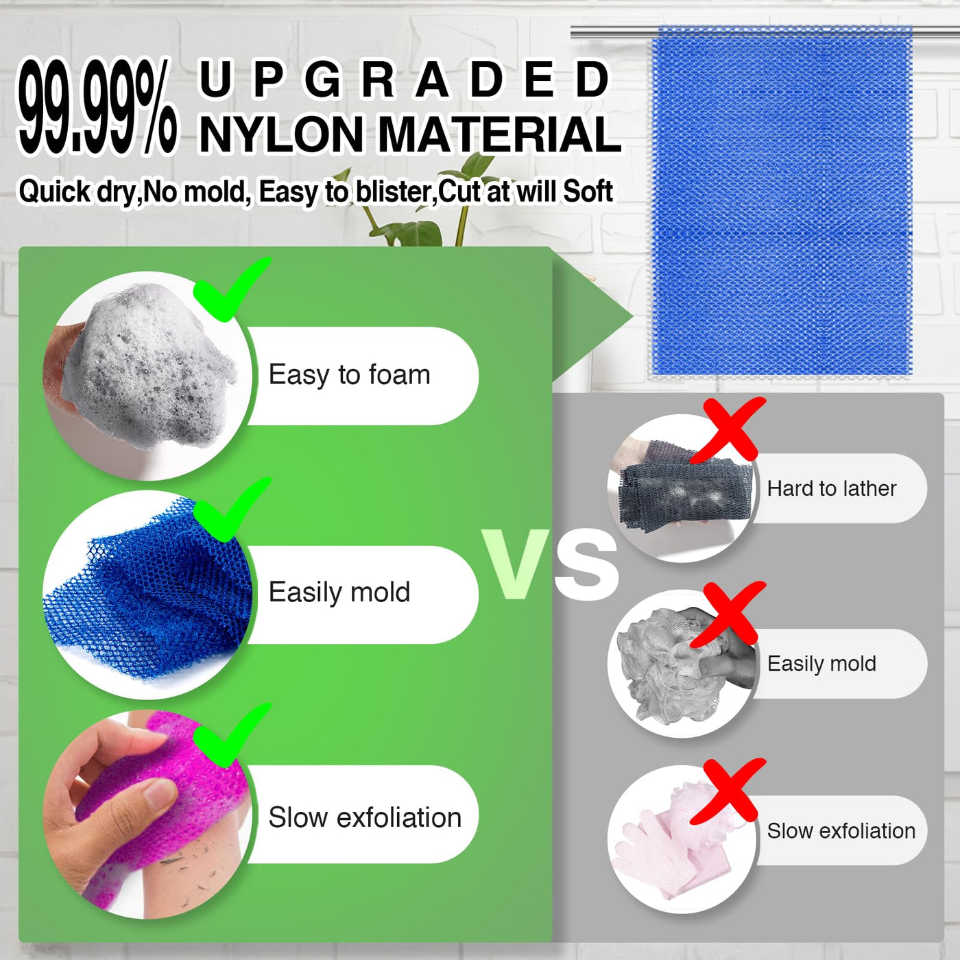 Specification:- Name: African Net Sponge&Nbsp;&Nbsp;- Material: High-Quality Nylon&Nbsp;&Nbsp;- Color: Multicolor&Nbsp;&Nbsp;- Quantity: 4 Pieces&Nbsp;&Nbsp;- Size: Approximately 11.81 Inches Wide And 31.5 Inches Long&Nbsp;&Nbsp;Note:&Nbsp;&Nbsp;The [African Net Sponge] May Feel Slightly Rough During The First Use, Which Is Completely Normal. For The Best Experience, Soak The Sponge In Warm Water For 15 Minutes Before Your First Use. Thank You!Tips:&Nbsp;&Nbsp;Please Allow For Slight Variations In The Size Due To Manual Measurements. There May Also Be Slight Color Differences Due To Monitor Settings. We Appreciate Your Understanding.Features:&Nbsp;&Nbsp;The African Net Sponge Provides Excellent Exfoliation Without Being Harsh On The Skin, Making It An Great Addition To Your Bathing Routine.