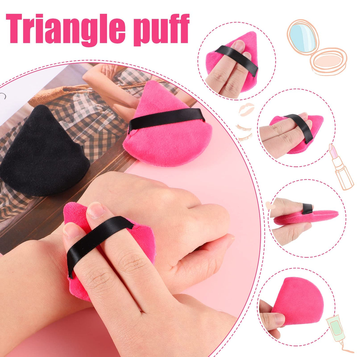 Pimoys 12 Pieces Powder Puff Soft Face Makeup Sponge Velour Triangle Powder Puffs For Loose Powder Cosmetic Foundation Sponge Be