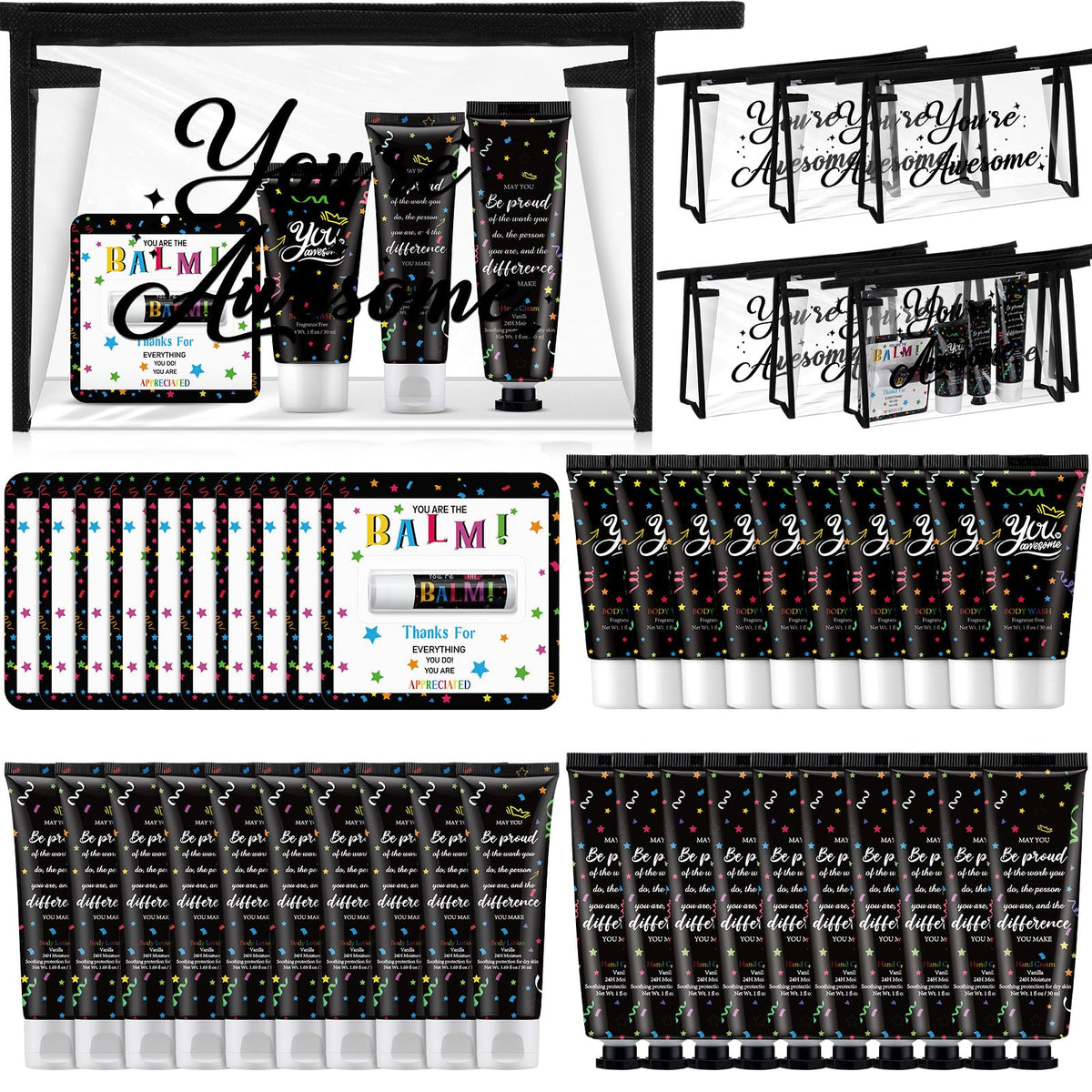Dimsile 100 Pieces Christmas Employee Appreciation Gifts Bulk Lip Balm Hand Body Lotions Teacher Staff Team Thank You Gifts Chri