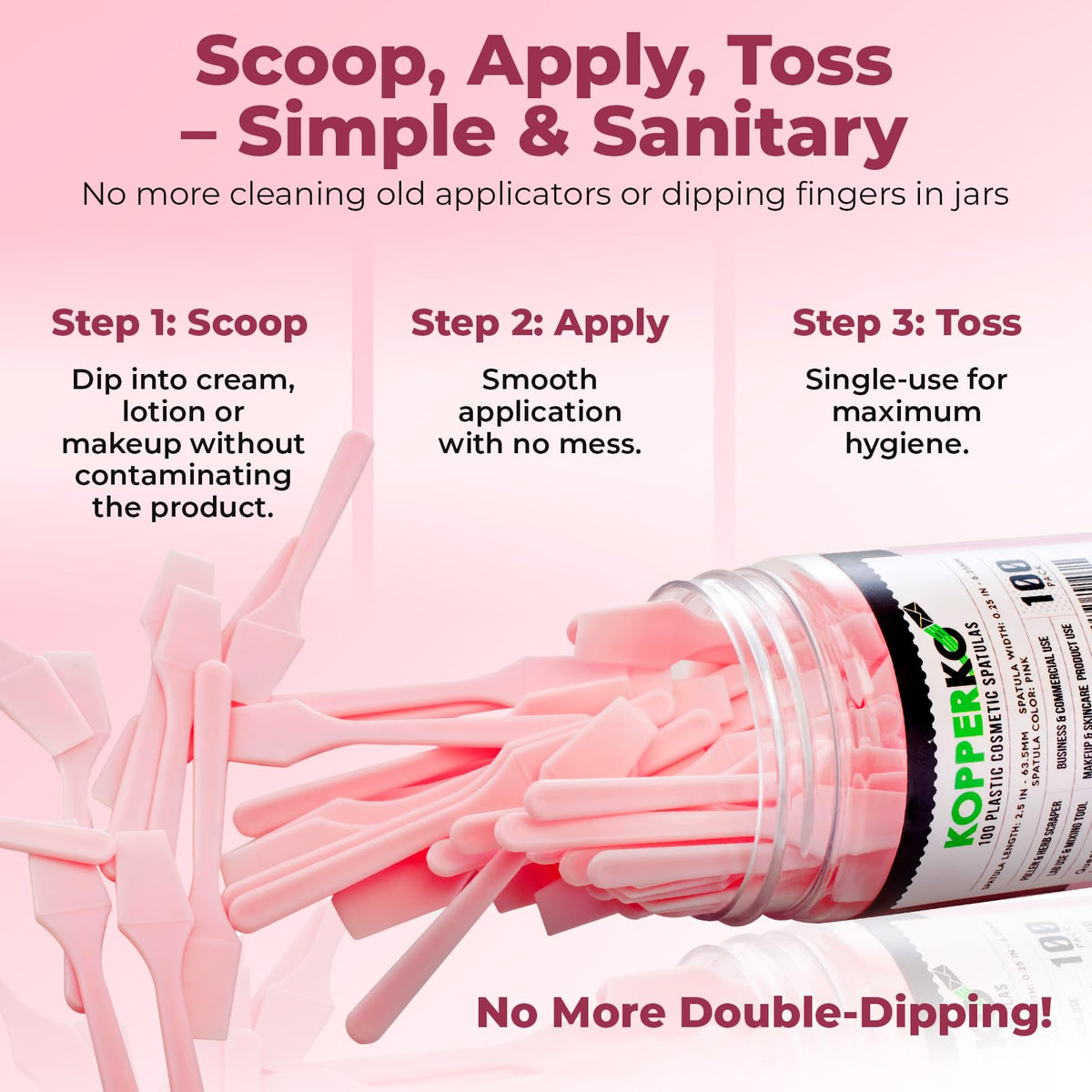 Kopperko Cosmetic Spatulas (2.5 , 100 Pack) - Small Plastic Spatula for Cosmetics, Creams & Crafts | Essential Esthetician Sup