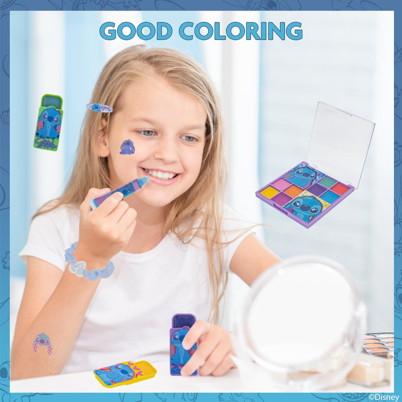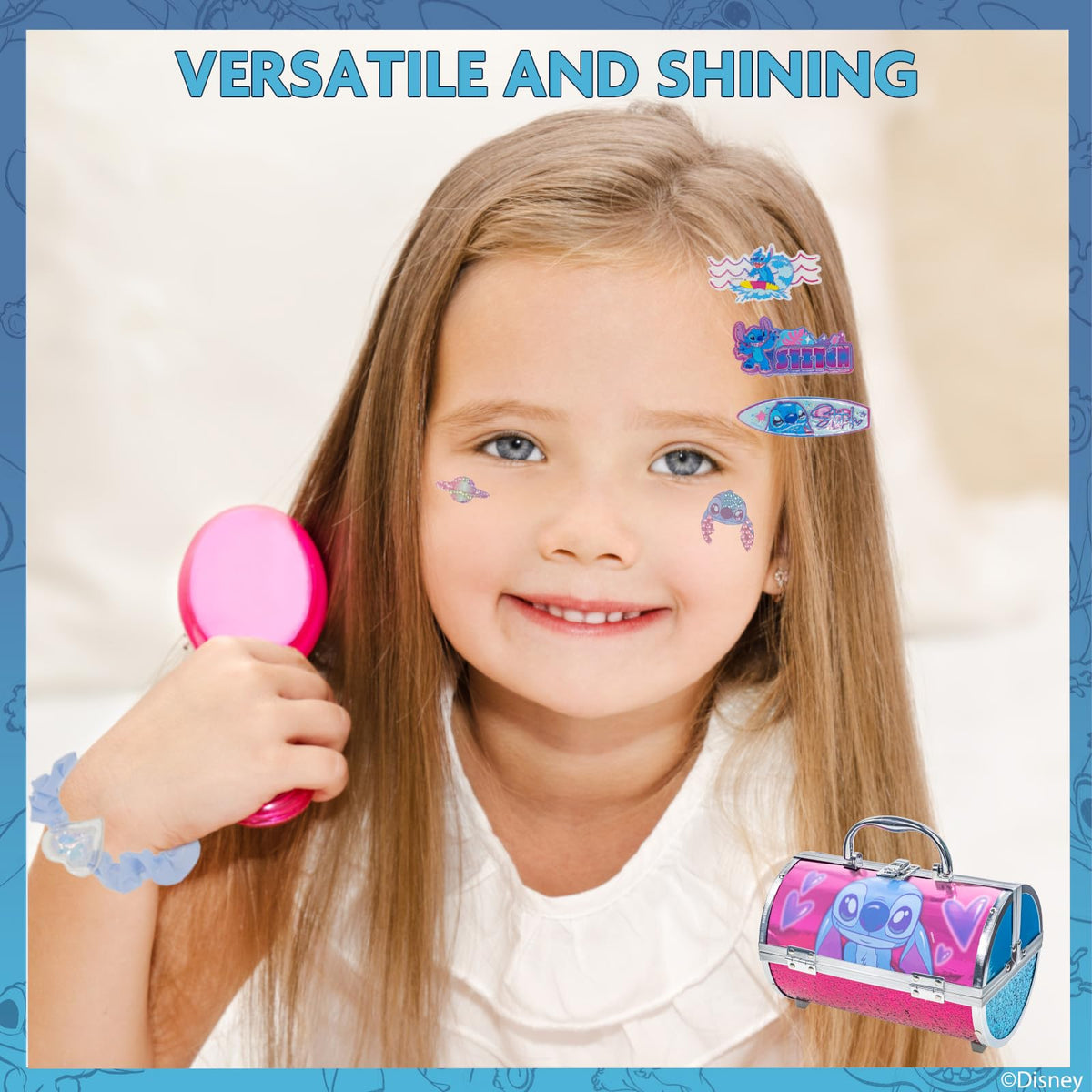 Stitch Girls Beauty Makeup Case Kit, Real Washable Makeup Set, Play Makeup, Party Favor, Birthday, Ages 3 4 5 6 7 8 9 10 11 12 B