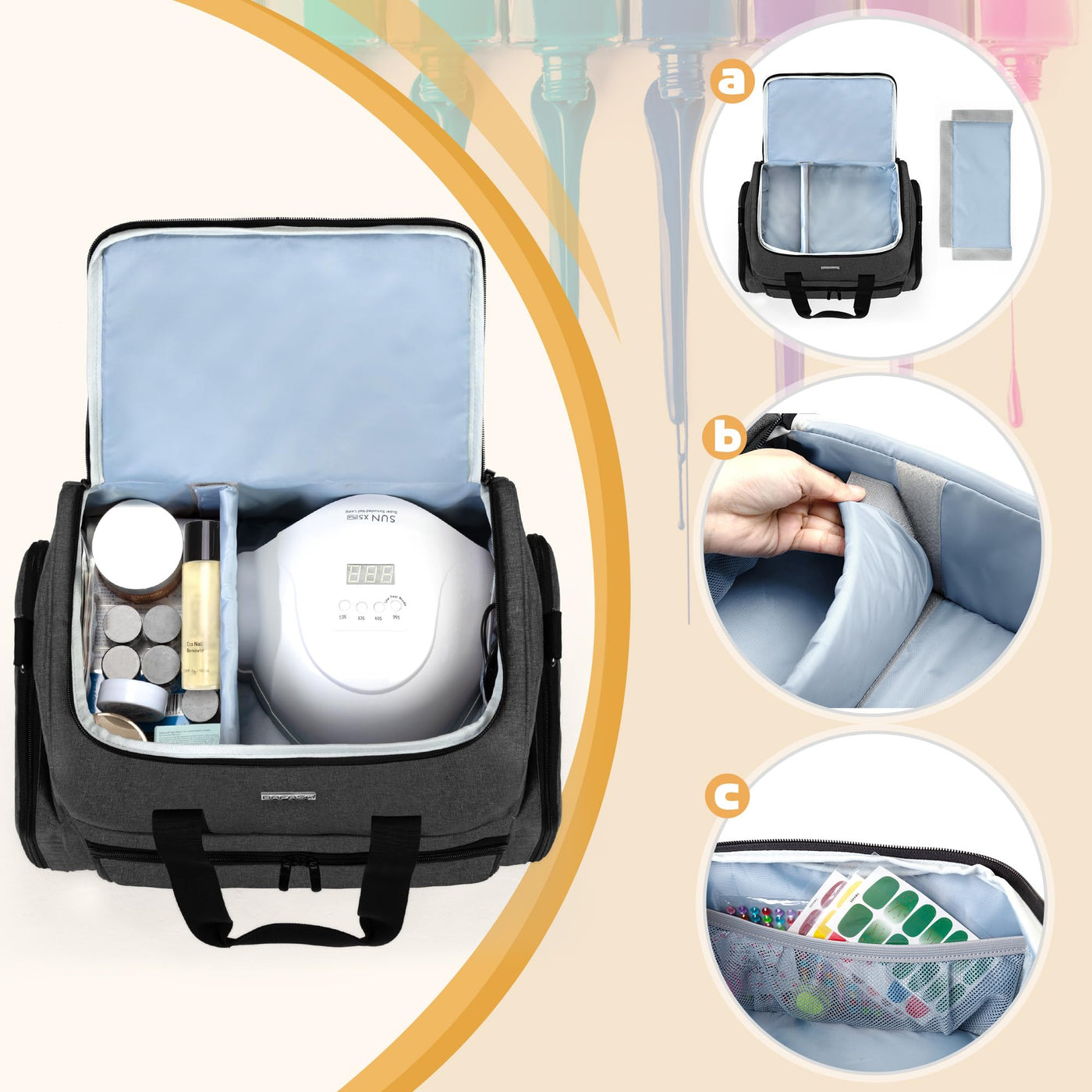 BAFASO Nail Polish Organizer Holds 80 Bottles (15ml - 0.5 fl.oz) and a UV Nail Lamp, Nail Polish Case with 2 Removable Pouches a