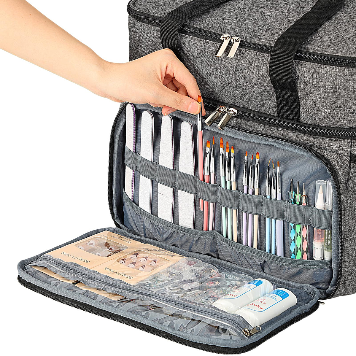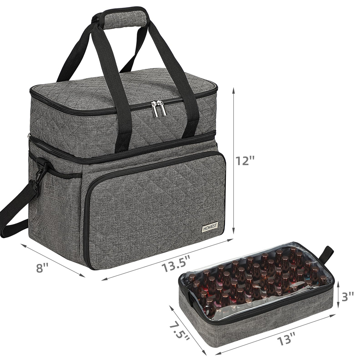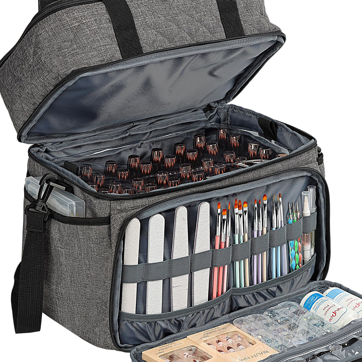 Homest Double Layer Nail Polish Organizer Holds 80 Bottles (15Ml/0.5 Fl. Oz) And A Lamp, Case With 2 Removable Pouches For Manic