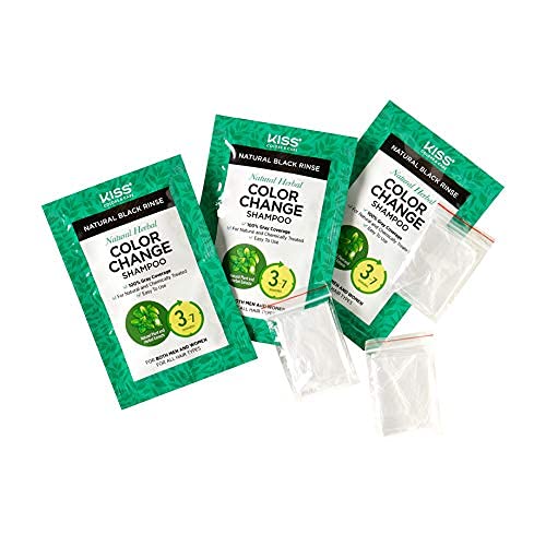 Kiss Quick Cover Natural Herbal Color Change Shampoo 3 Pouches (2 Pack, Shampoo&Mascara (Natural Black))