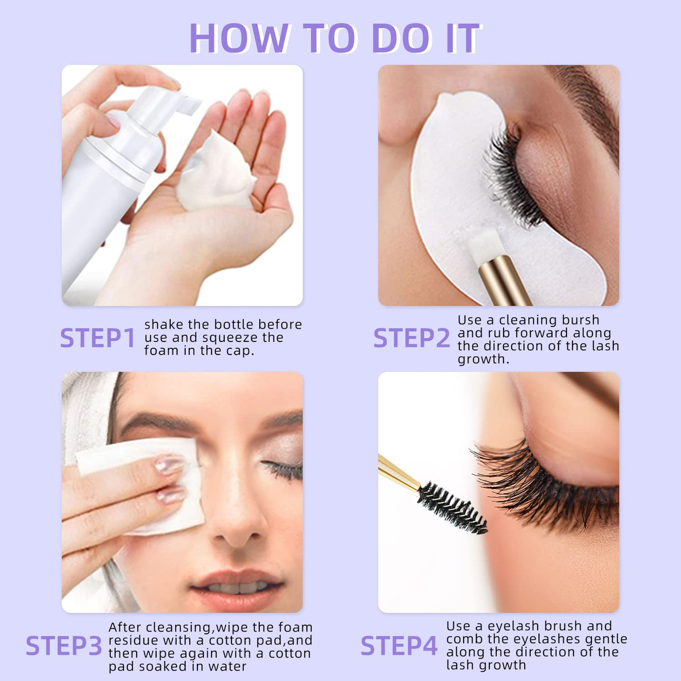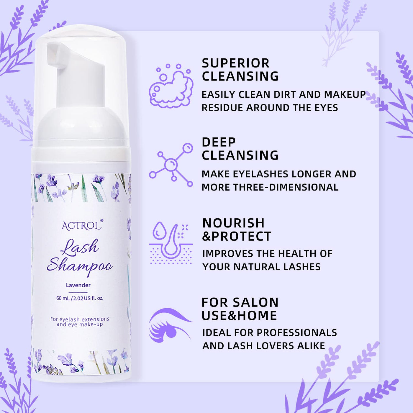ACTROL Eyelash Extension Cleanser 60ML Natural Lash Extension Shampoo Lavender Professional Eyelid Foaming Cleanser Paraben & Su