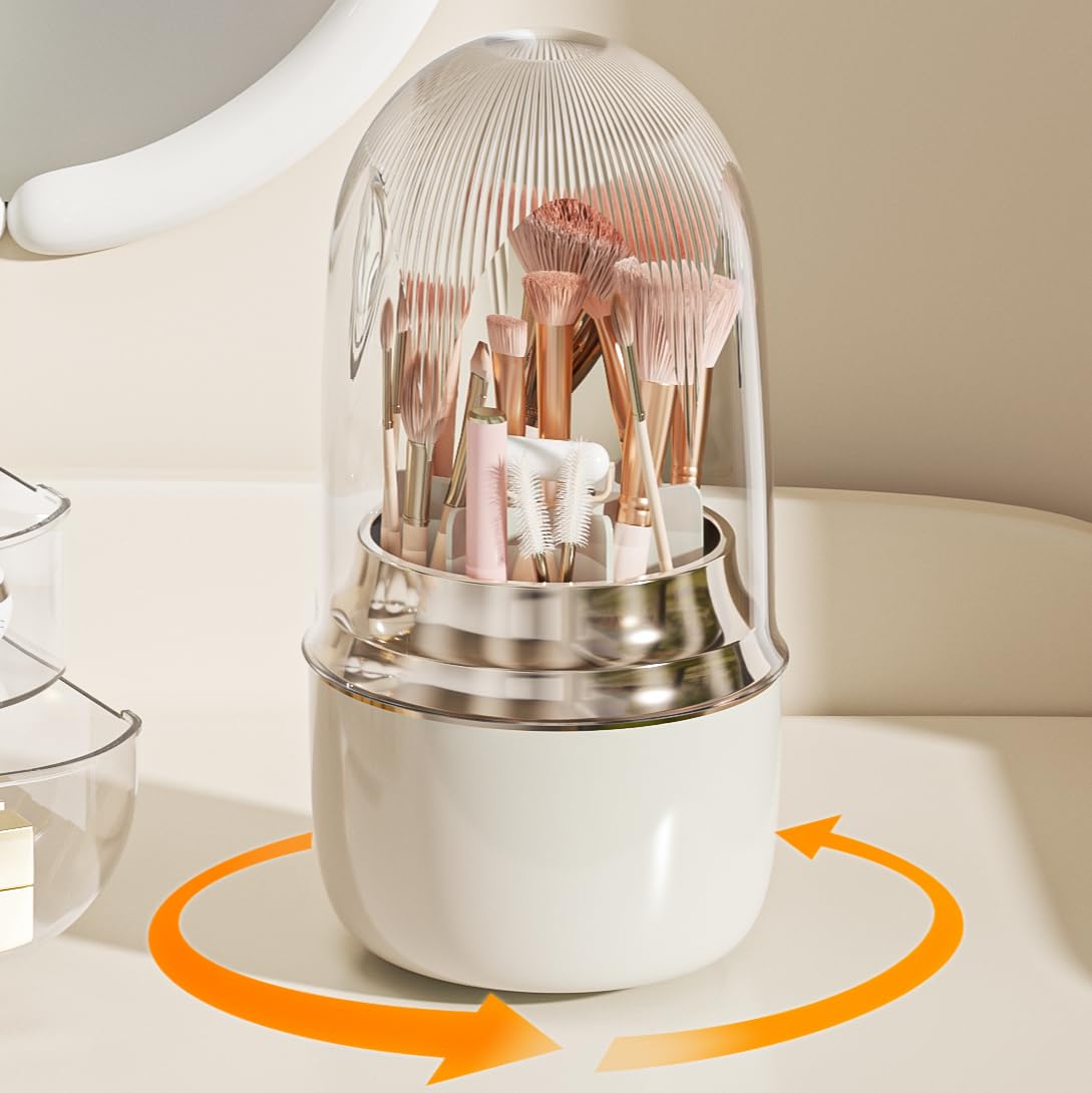 360-Degree Rotation: Effortlessly Access All Your Brushes With Our Innovative 360-Degree Rotating Design, Allowing For Quick And Easy Selection Without Any Hassle. | Cute & Functional Design: Featuring An Adorable Aesthetic, This Makeup Brush Holder Isn'T Just Practical; It Makes A Charming Gift For The Special Women In Your Life, Combining Style With Functionality. | Enhanced Stability: With A High-Thickness Design And Silicone Anti-Slip Feet, This Make Up Brush Holder Stays Securely In Place, Ensuring Your Brushes Remain Safe And Upright, Even During Daily Use. | Dust-Free Protection: Keep Your Brushes Clean And Pristine! Our Makeup Brush Organizer Effectively Isolates Dust, Ensuring Your Makeup Tools Stay Hygienic And Ready For Use At All Times. | Smart Storage Solution: The Automatic Inward-Tilting Design Allows For Organized, Categorized Storage Of Your Brushes, Making It Easy To Find What You Need While Keeping Your Vanity Tidy And Stylish.